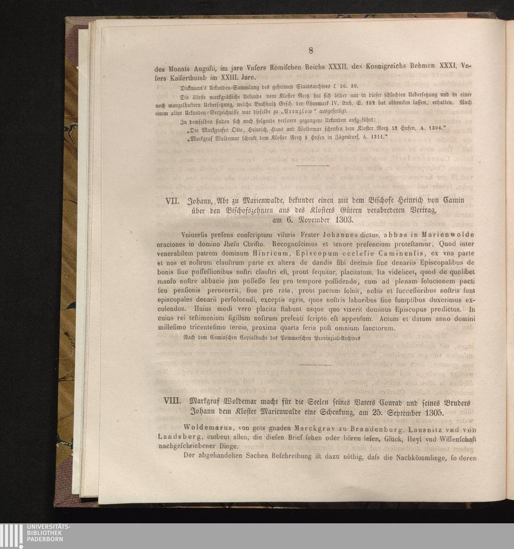VIII. Markgraf Woldemar macht für die Seelen seines Vaters Conrad und seines Bruders[...]