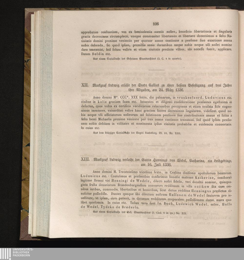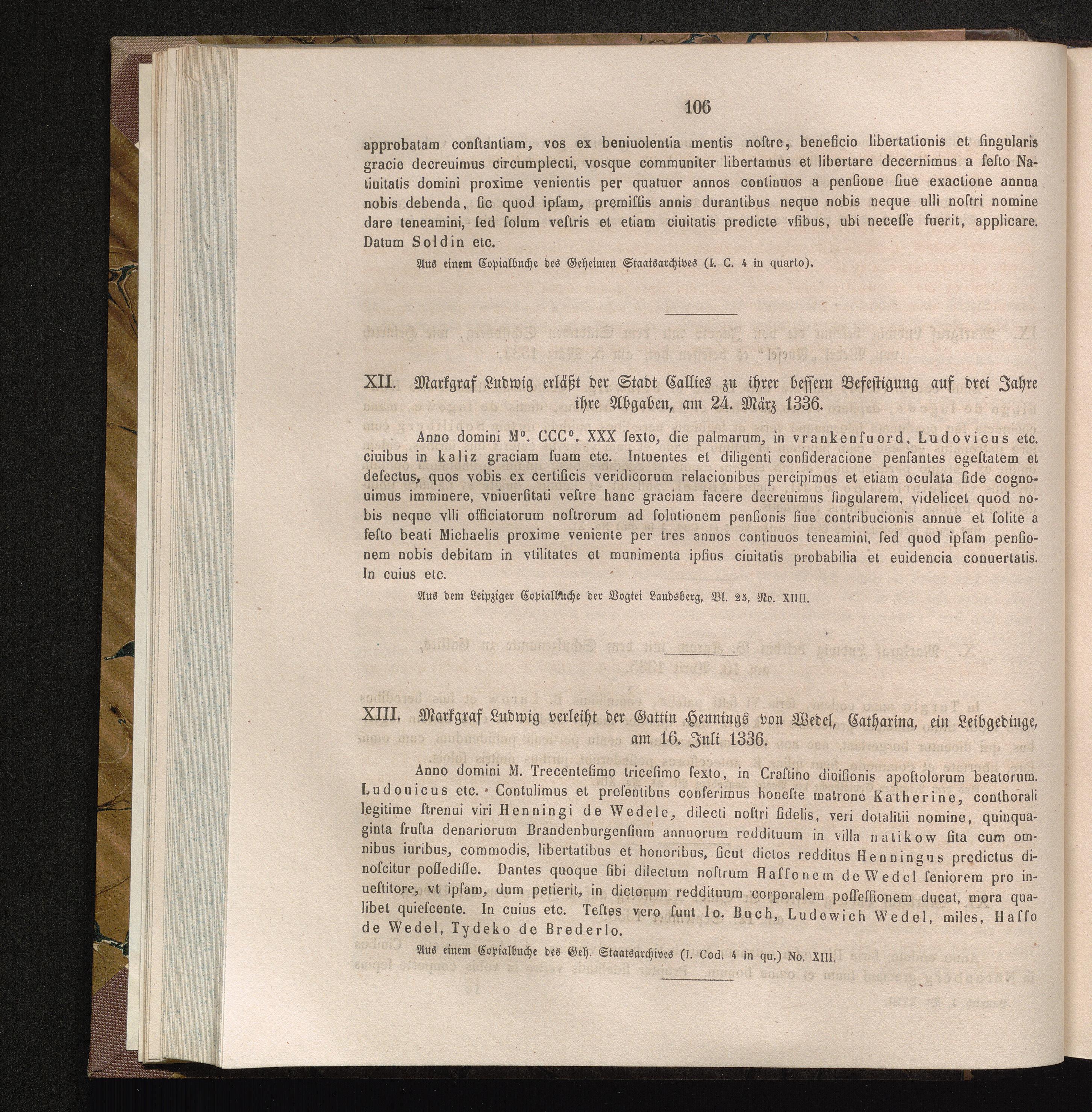 XIII. Markgraf Ludwig verleiht der Gattin Hennings von Wedel, Catharina, ein Leibgedinge,[...]