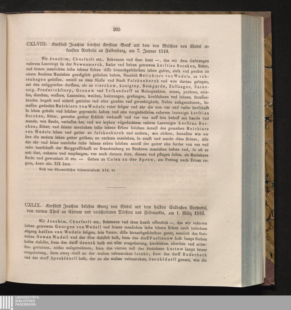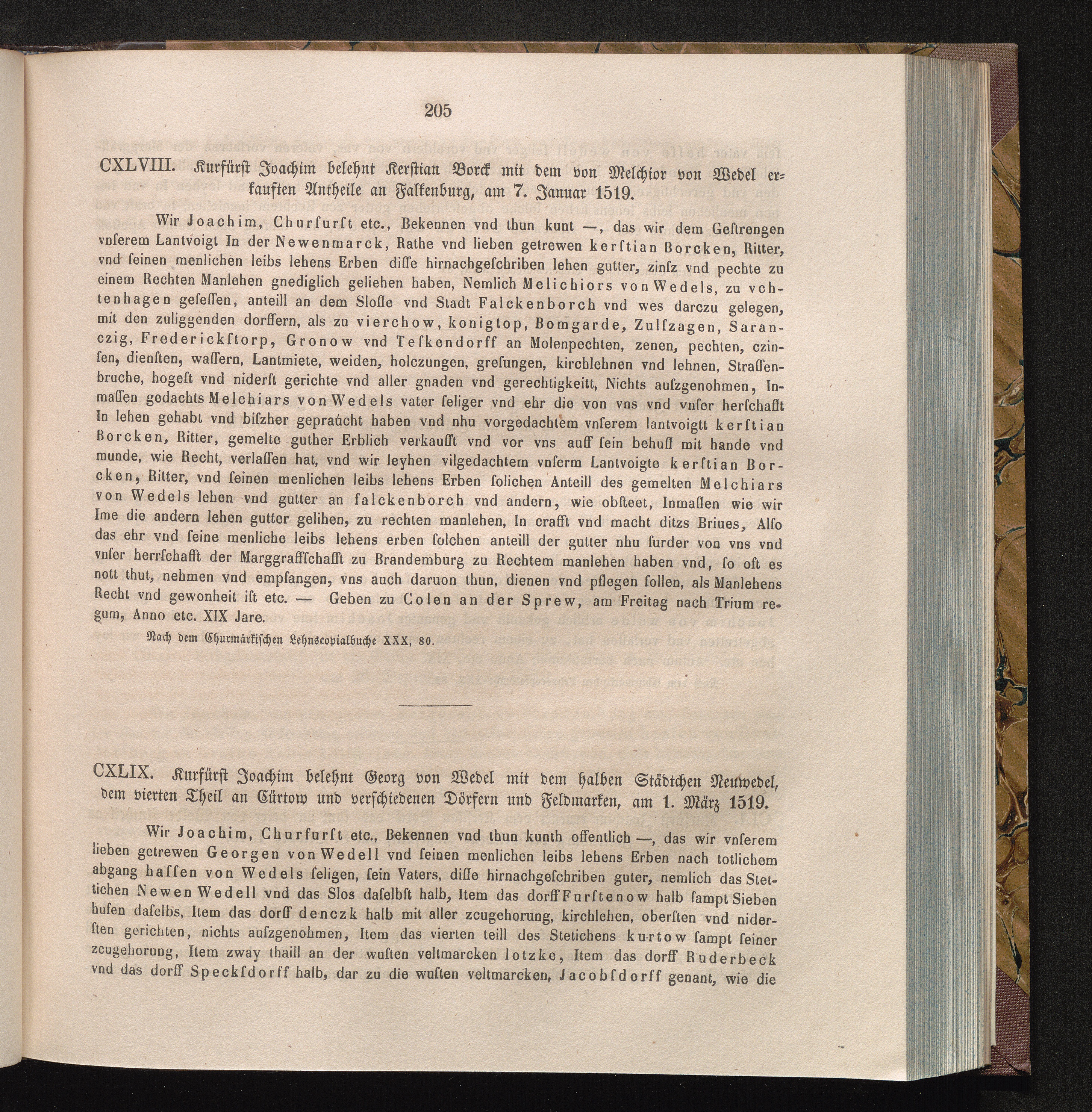 CXLIX. Kurfürst Joachim belehnt Georg von Wedel mit dem halben Städtchen Neuwedel,[...]
