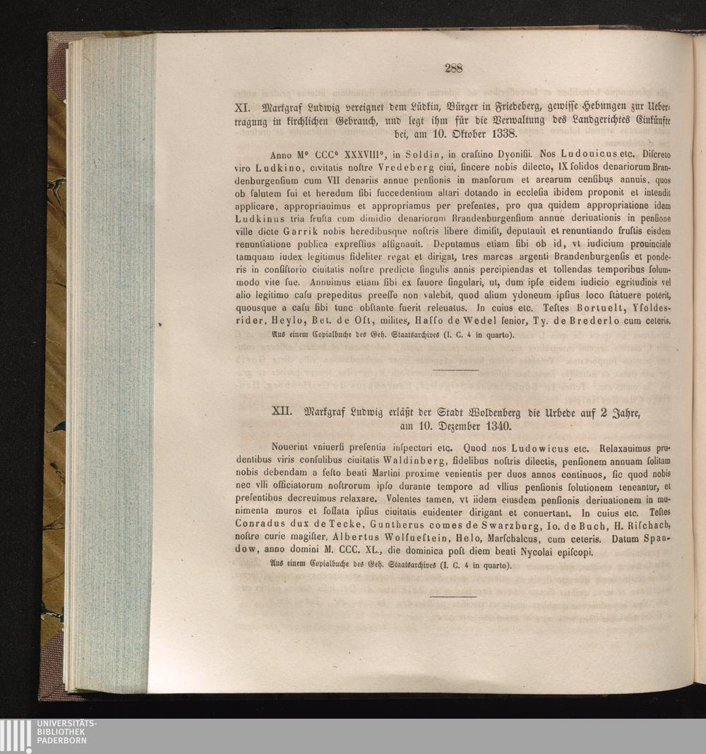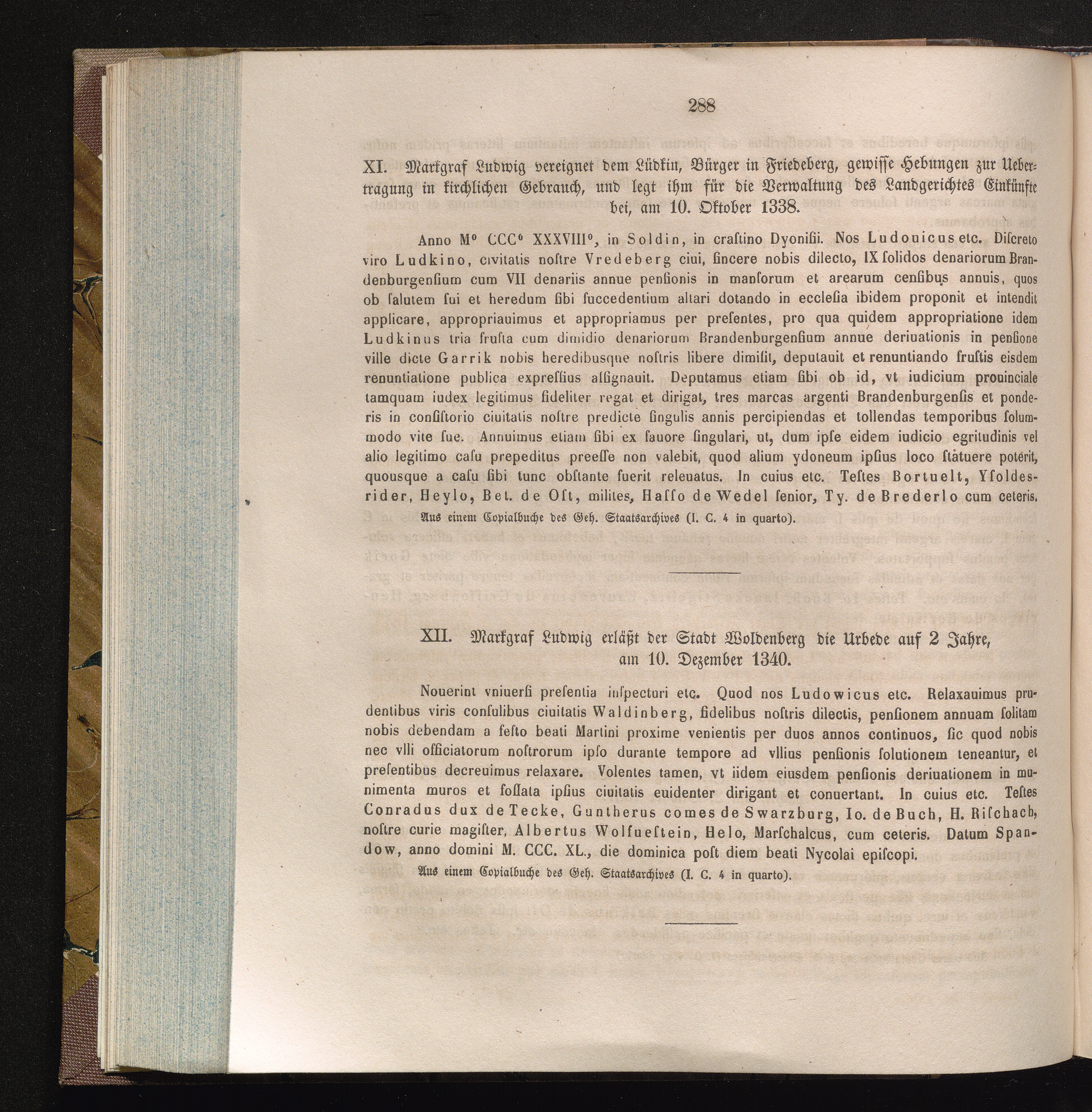 XII. Markgraf Ludwig erläßt der Stadt Woldenberg die Urbede auf 2 Jahre, am 10. Dezember[...]
