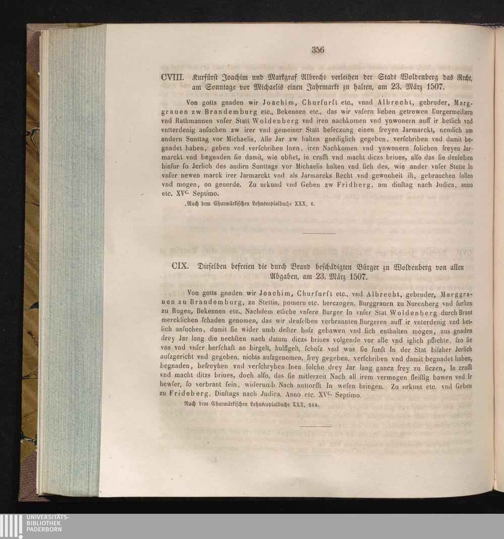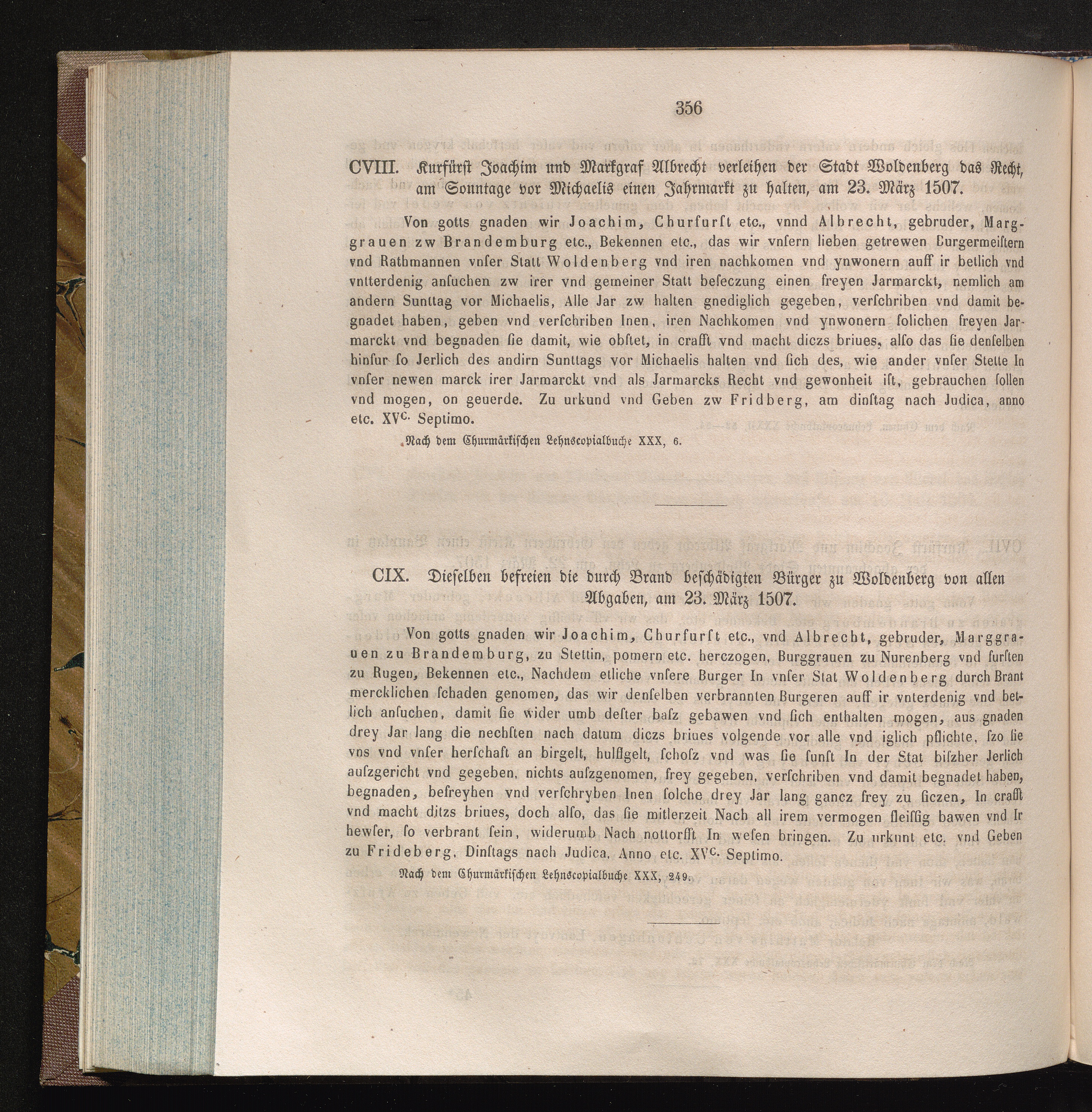 CIX. Dieselben befreien die durch Brand beschädigten Bürger zu Woldenberg von allen[...]
