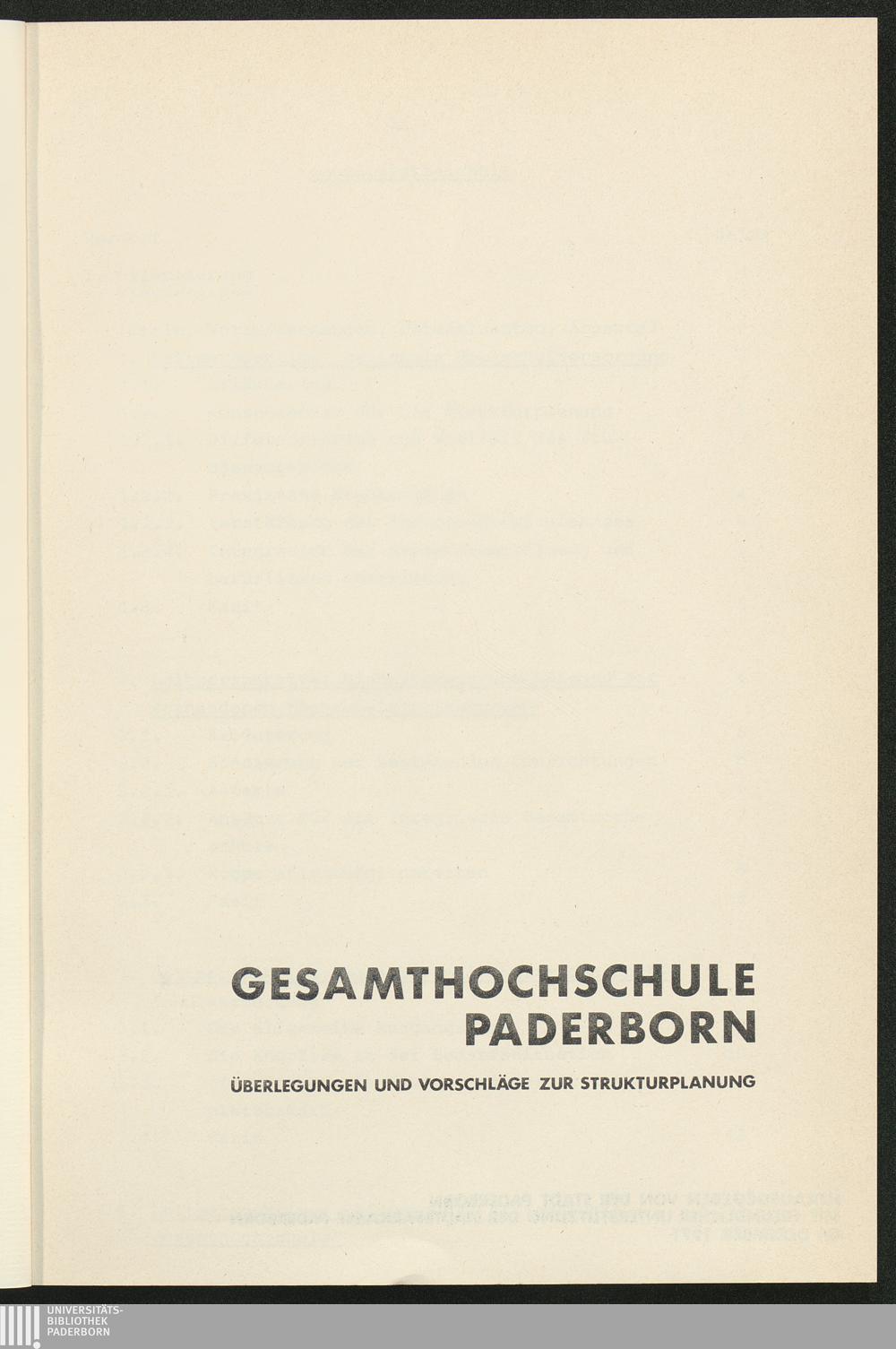 Gesamthochschule Paderborn : Überlegungen und Vorschläge zur Strukturplanung / [Hrsg. von der Stadt Paderborn. Bearb. von Christian Heichert]