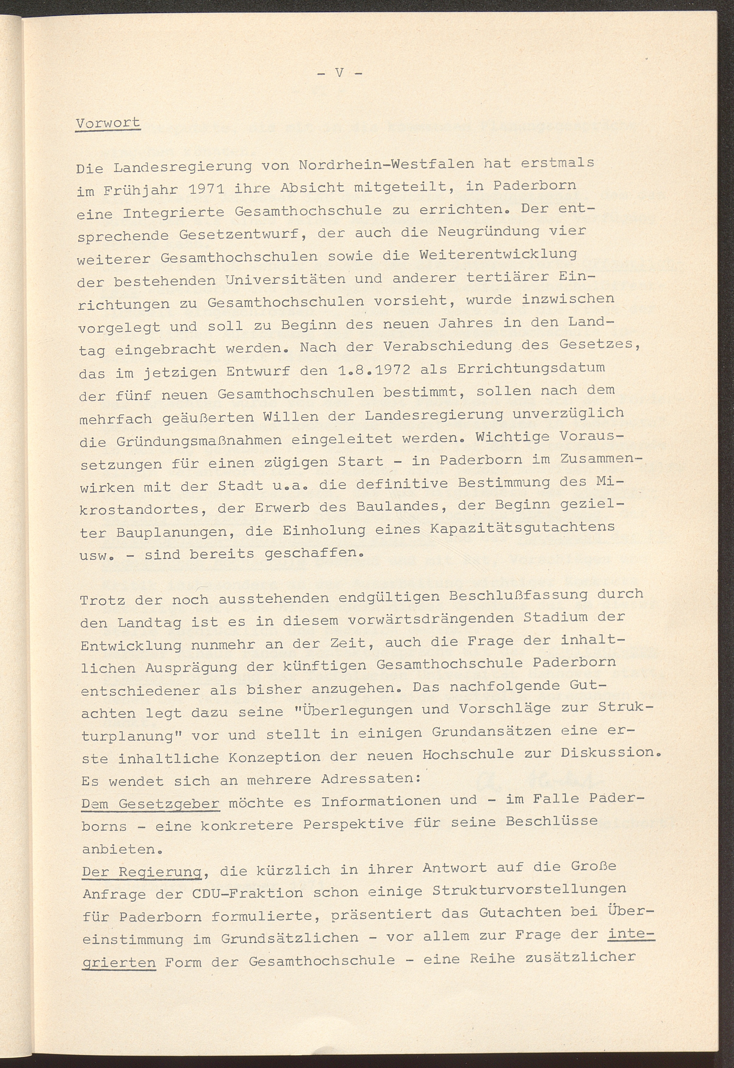 Gesamthochschule Paderborn : Überlegungen und Vorschläge zur Strukturplanung / [Hrsg. von der Stadt Paderborn. Bearb. von Christian Heichert]