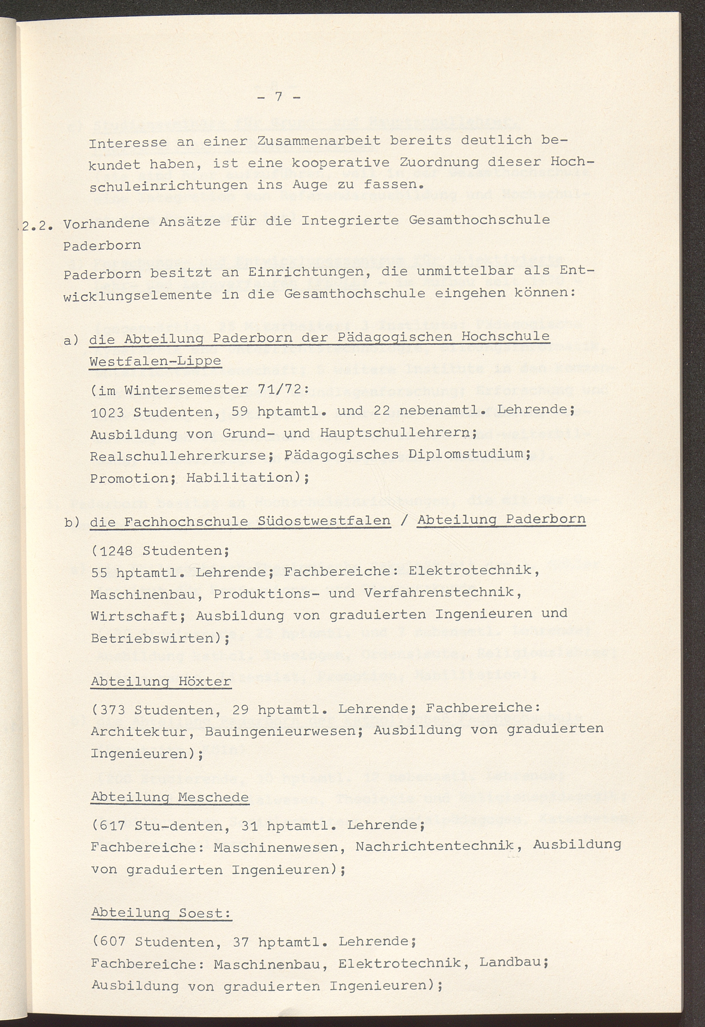 2.2.2. Ansätze für die Integrierte Gesamthochschule