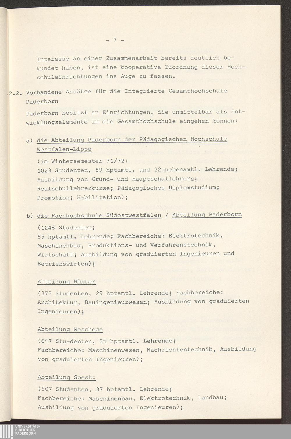 Gesamthochschule Paderborn : Überlegungen und Vorschläge zur Strukturplanung / [Hrsg. von der Stadt Paderborn. Bearb. von Christian Heichert]