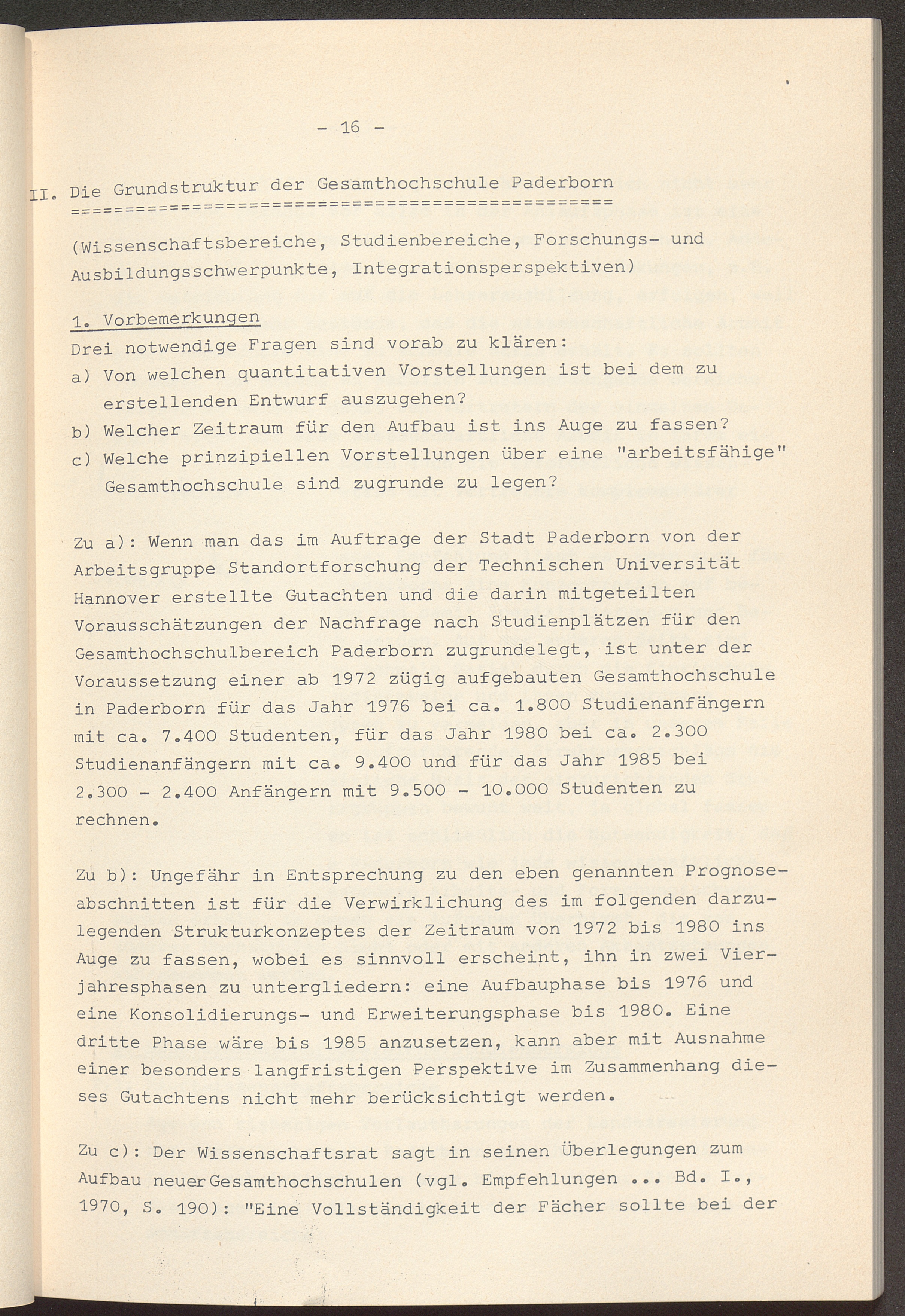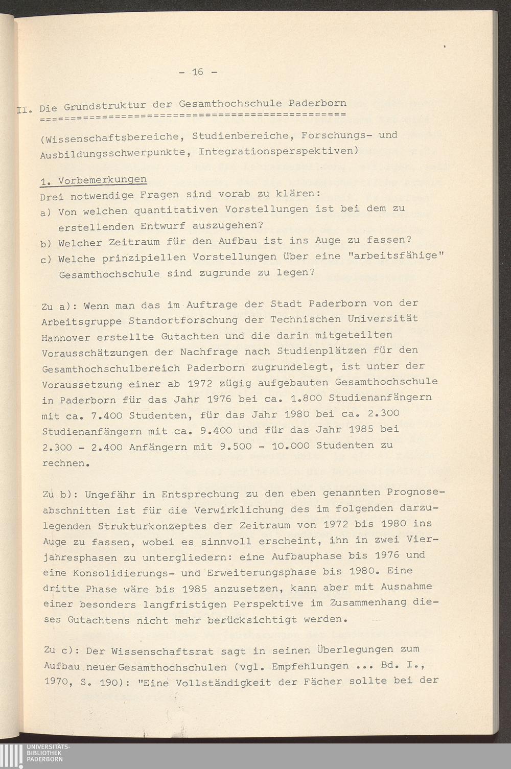 II. Die Grundstruktur der Gesamthochschule Paderborn (Wissenschaftsbereiche, Studienbereiche,[...]