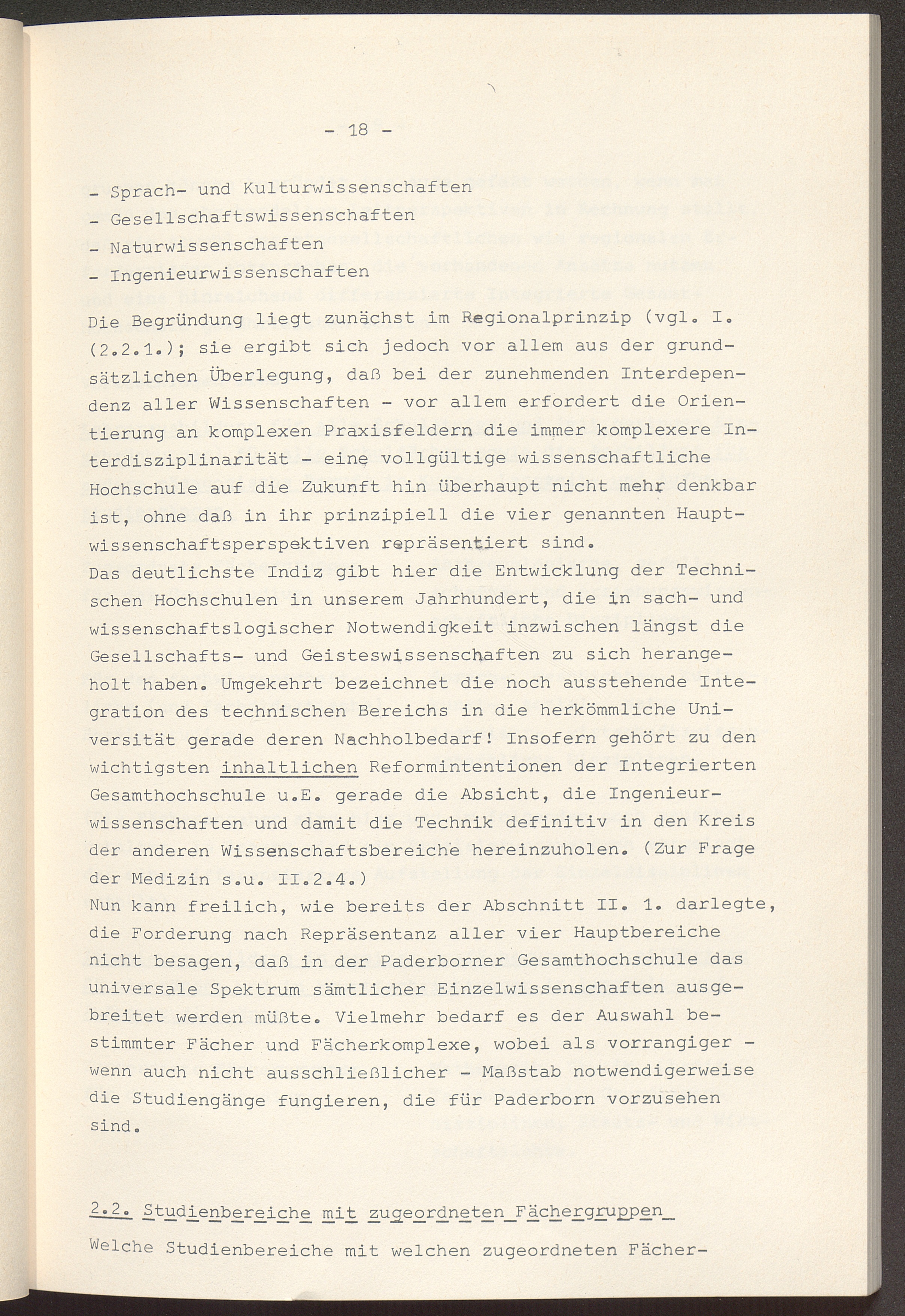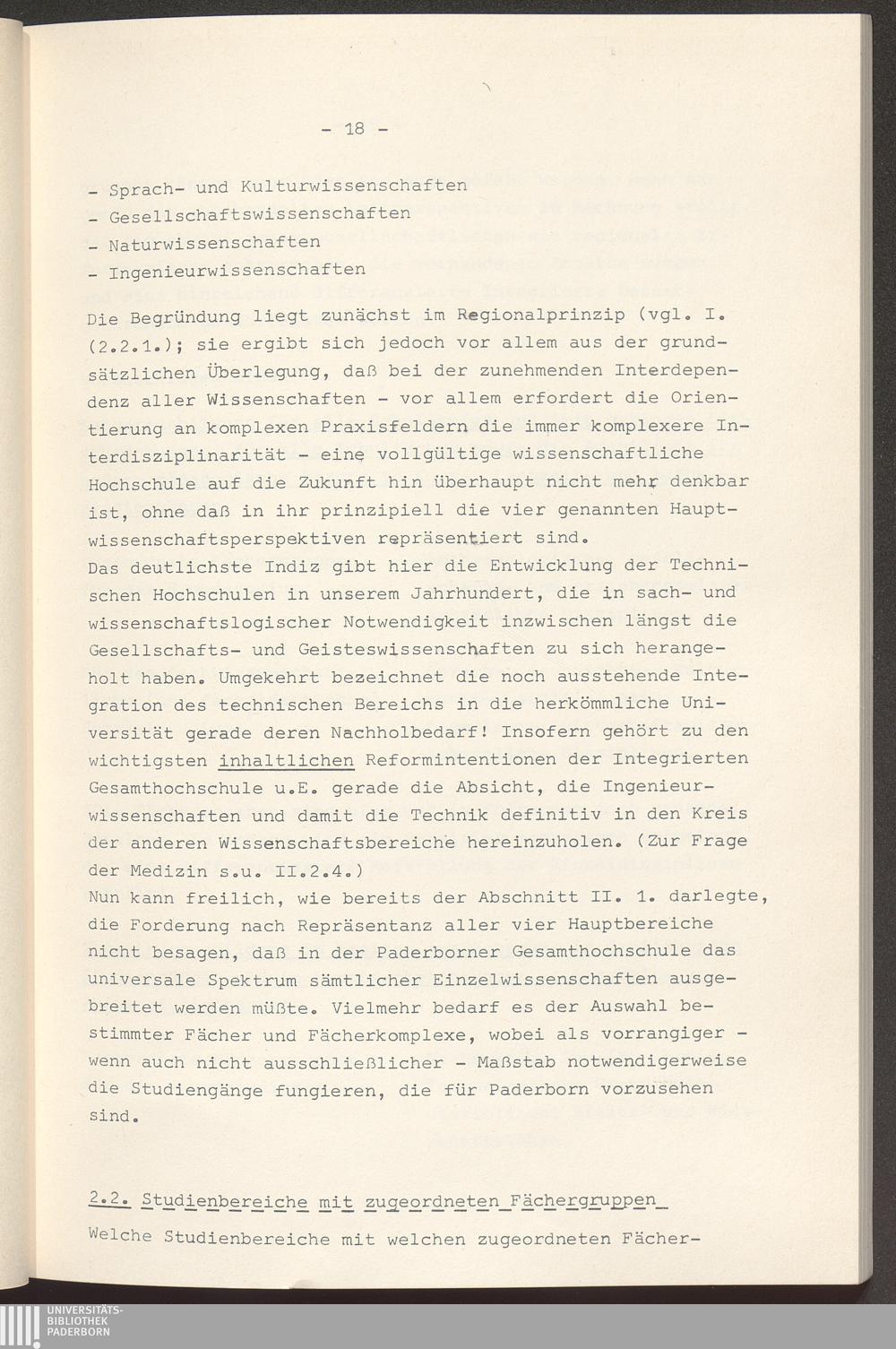 II. Die Grundstruktur der Gesamthochschule Paderborn (Wissenschaftsbereiche, Studienbereiche,[...]