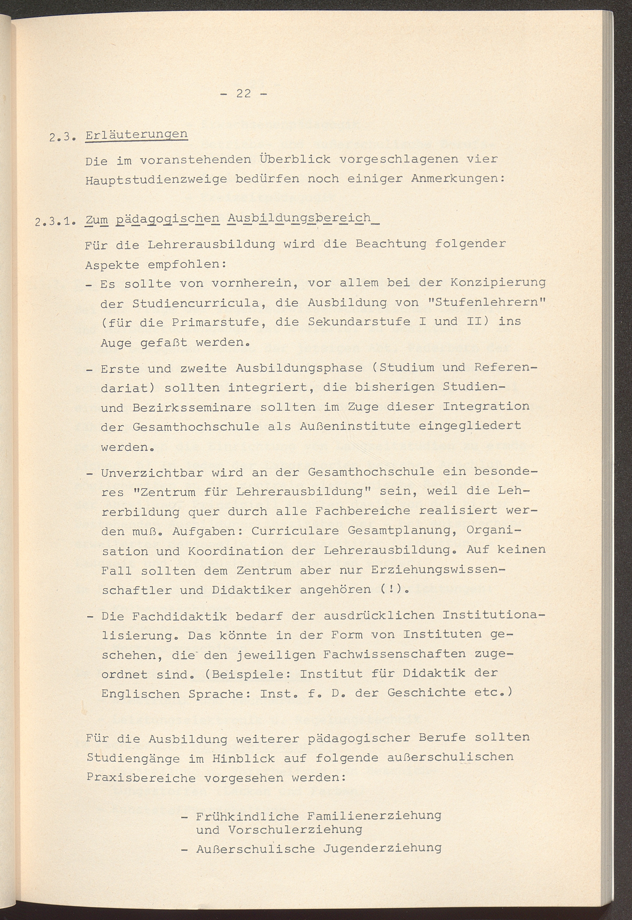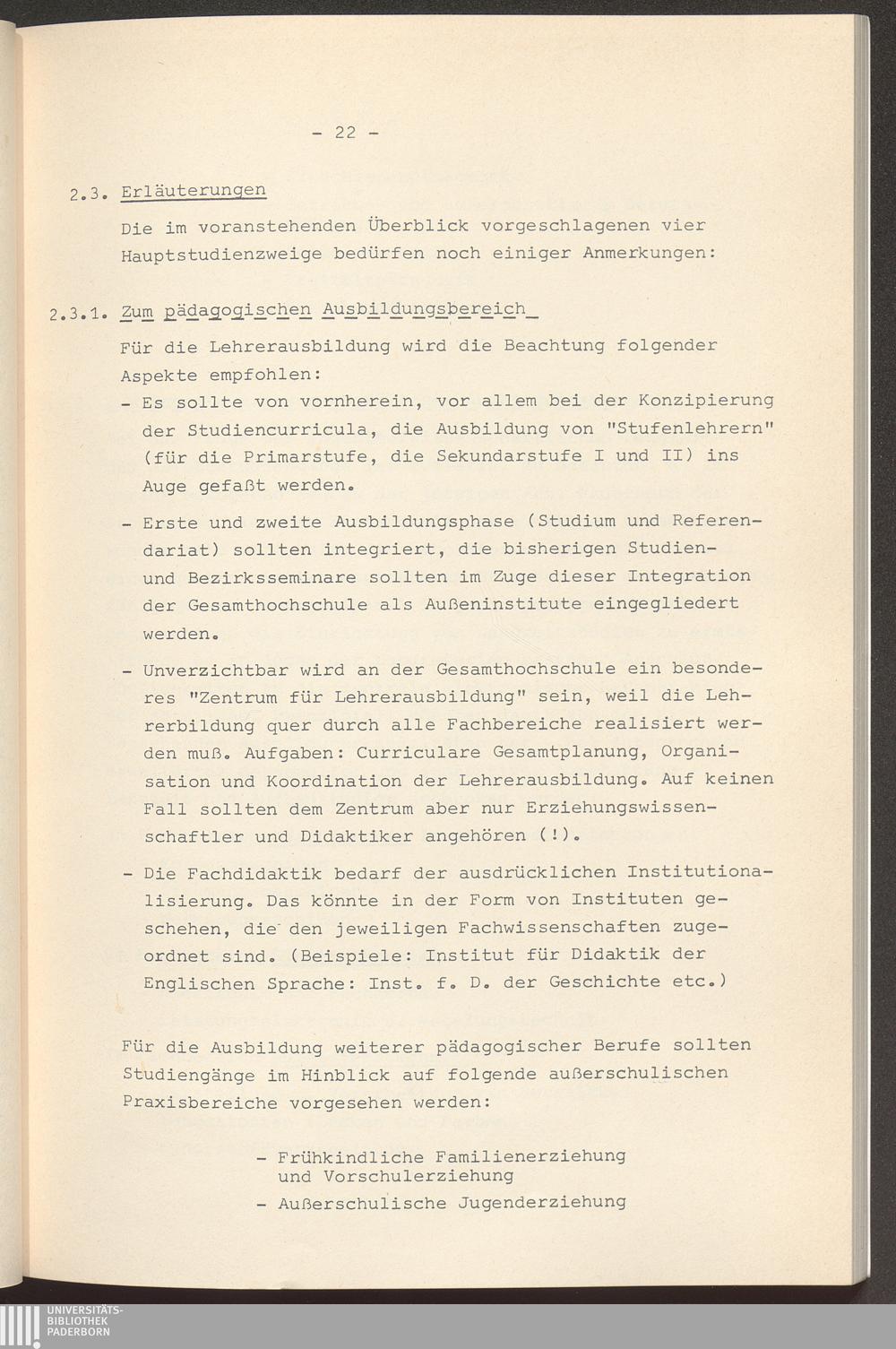 2.3.1. Zum pädagogischen Ausbildungsbereich