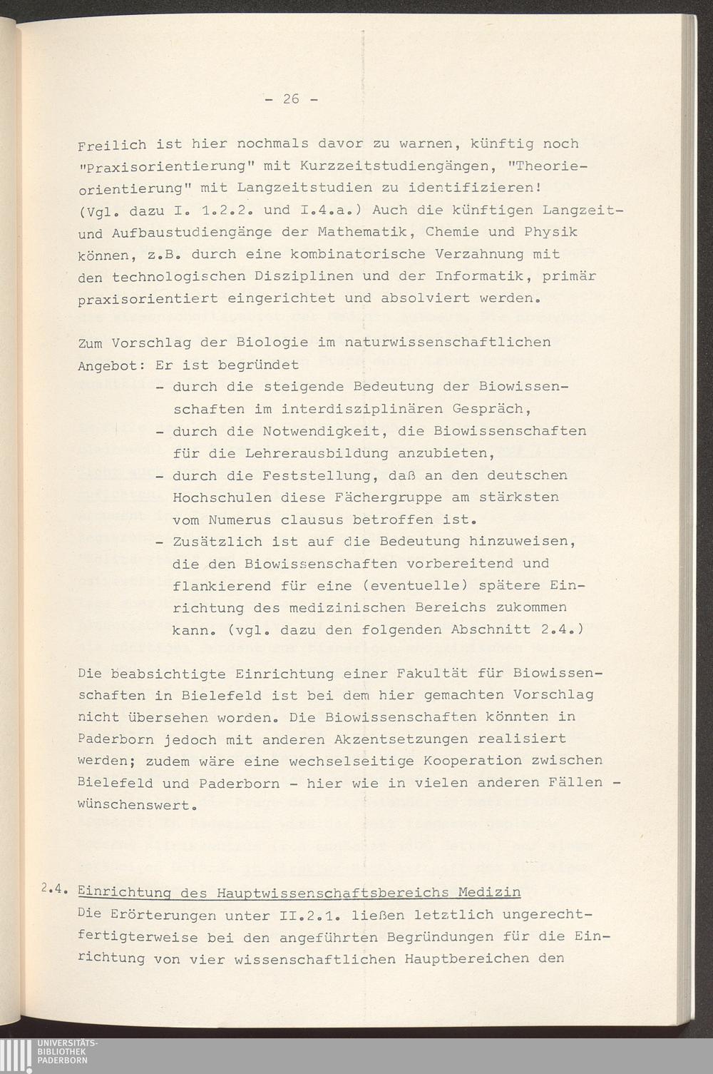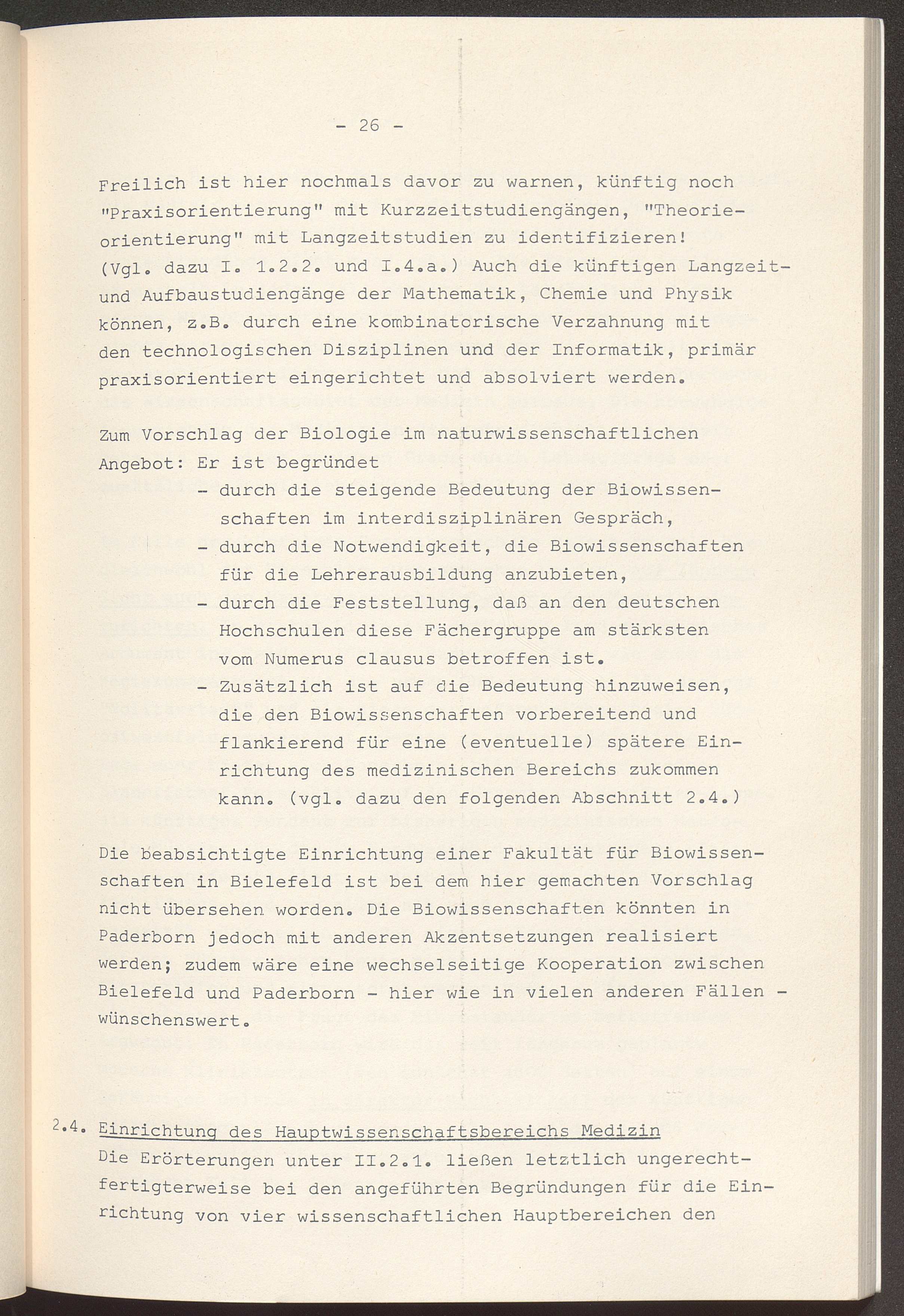 2.4. Einrichtung des Hauptwissenschaftsbereichs Medizin
