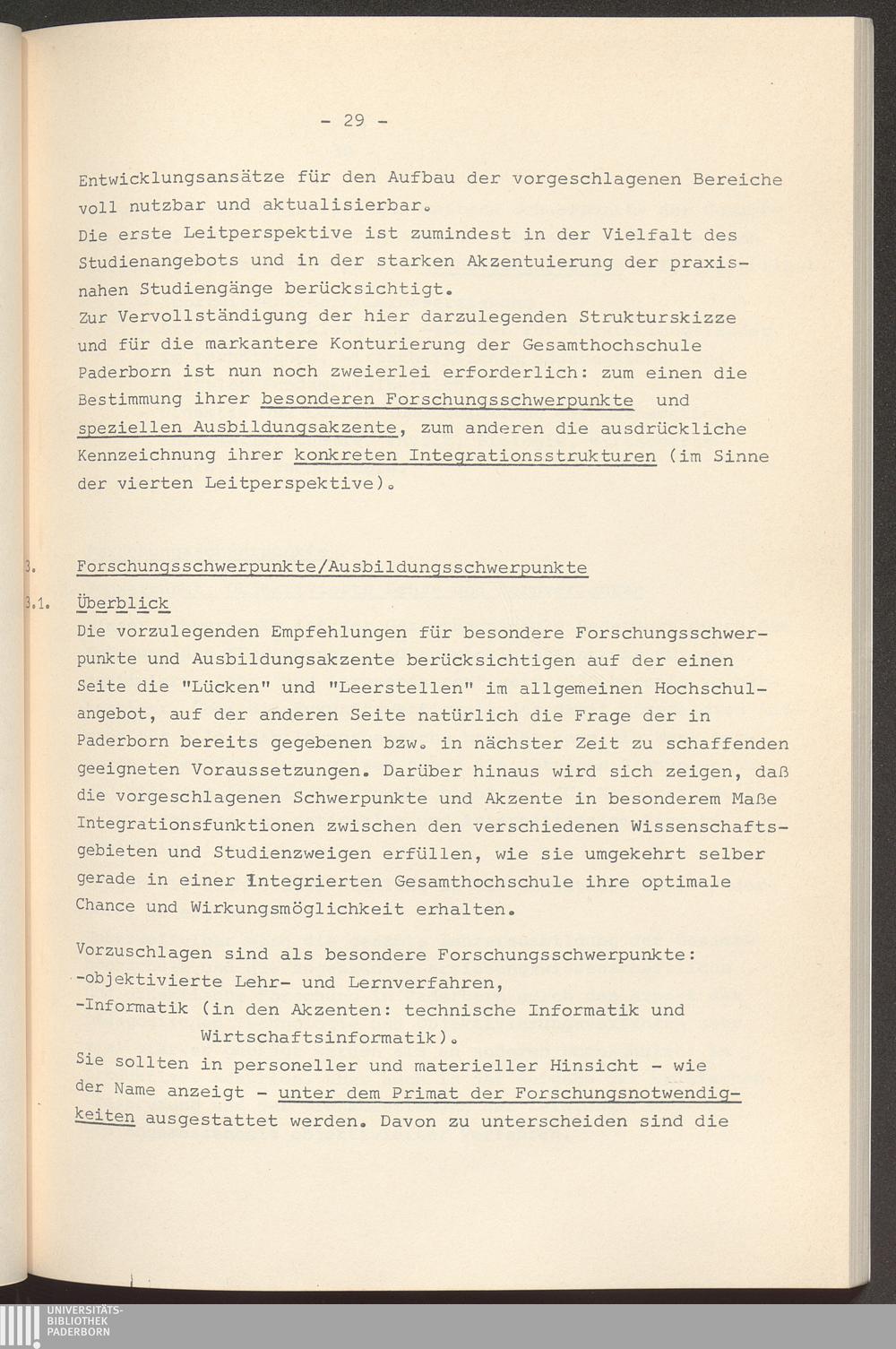 Gesamthochschule Paderborn : Überlegungen und Vorschläge zur Strukturplanung / [Hrsg. von der Stadt Paderborn. Bearb. von Christian Heichert]