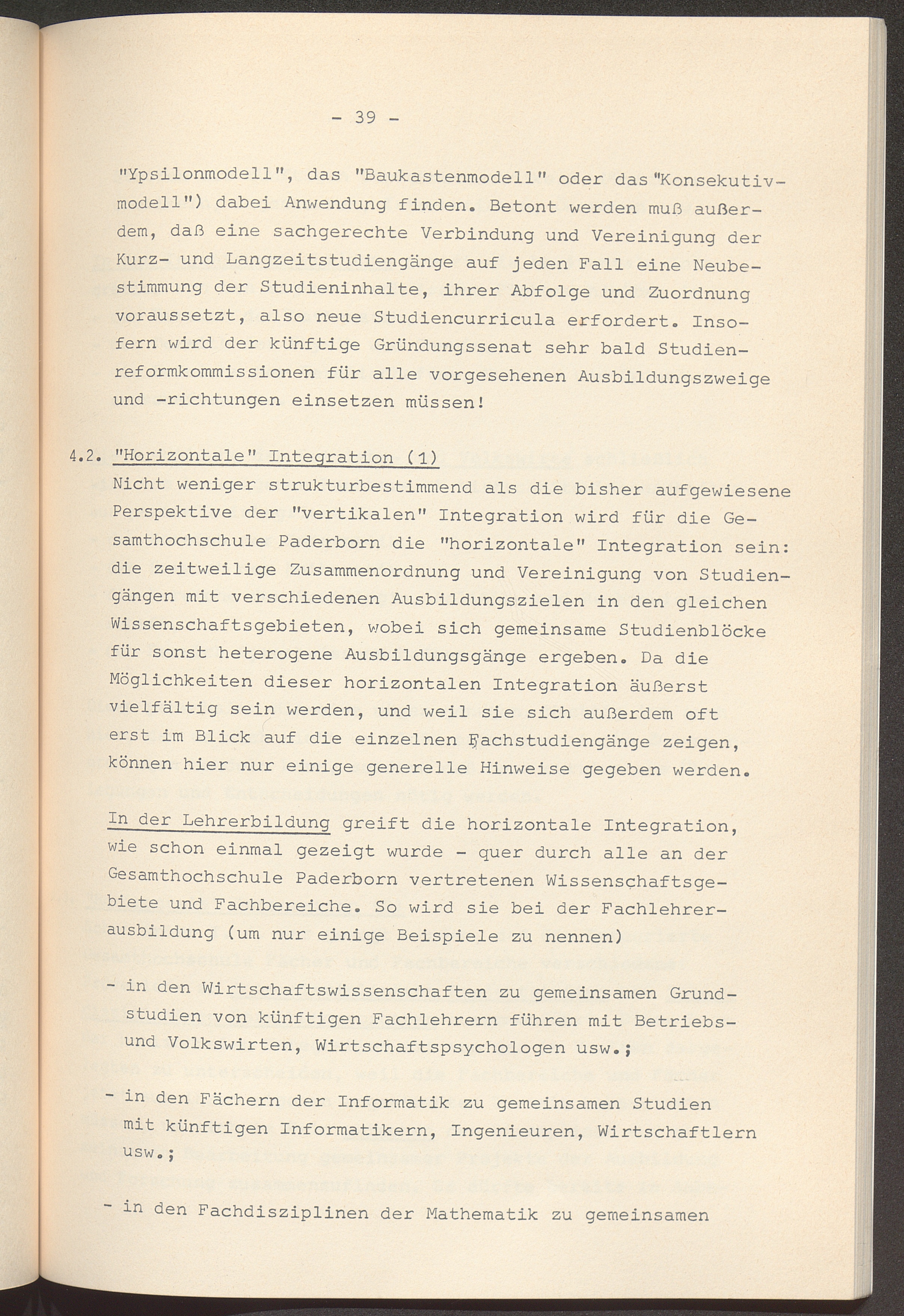 II. Die Grundstruktur der Gesamthochschule Paderborn (Wissenschaftsbereiche, Studienbereiche,[...]