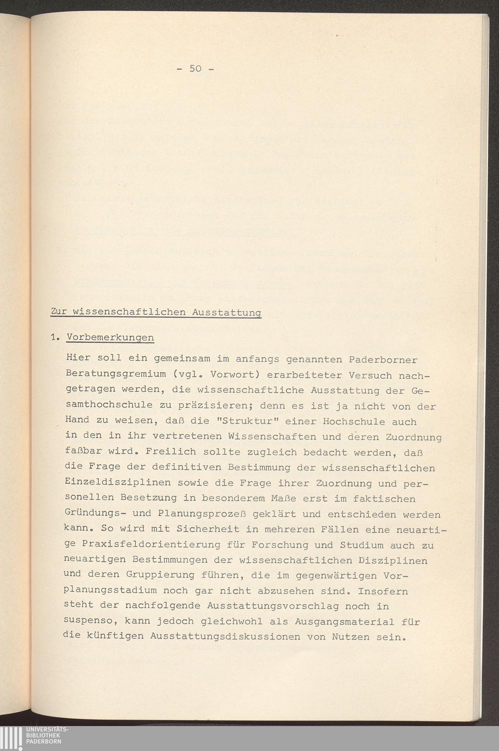 Gesamthochschule Paderborn : Überlegungen und Vorschläge zur Strukturplanung / [Hrsg. von der Stadt Paderborn. Bearb. von Christian Heichert]