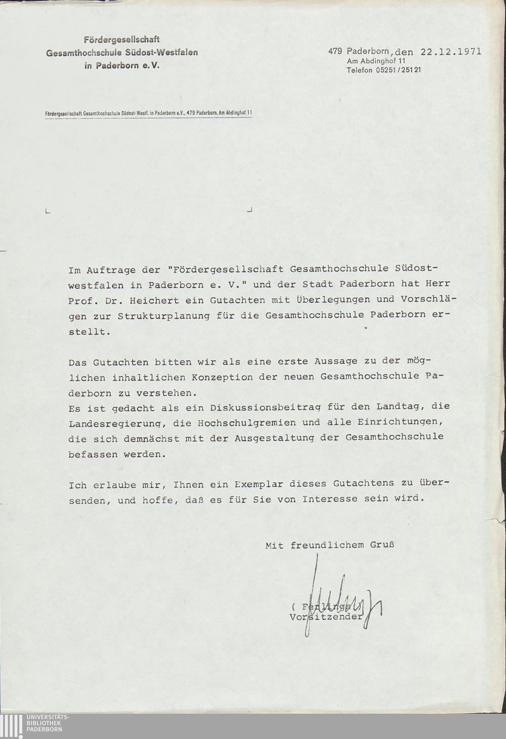 Gesamthochschule Paderborn : Überlegungen und Vorschläge zur Strukturplanung / [Hrsg. von der Stadt Paderborn. Bearb. von Christian Heichert]