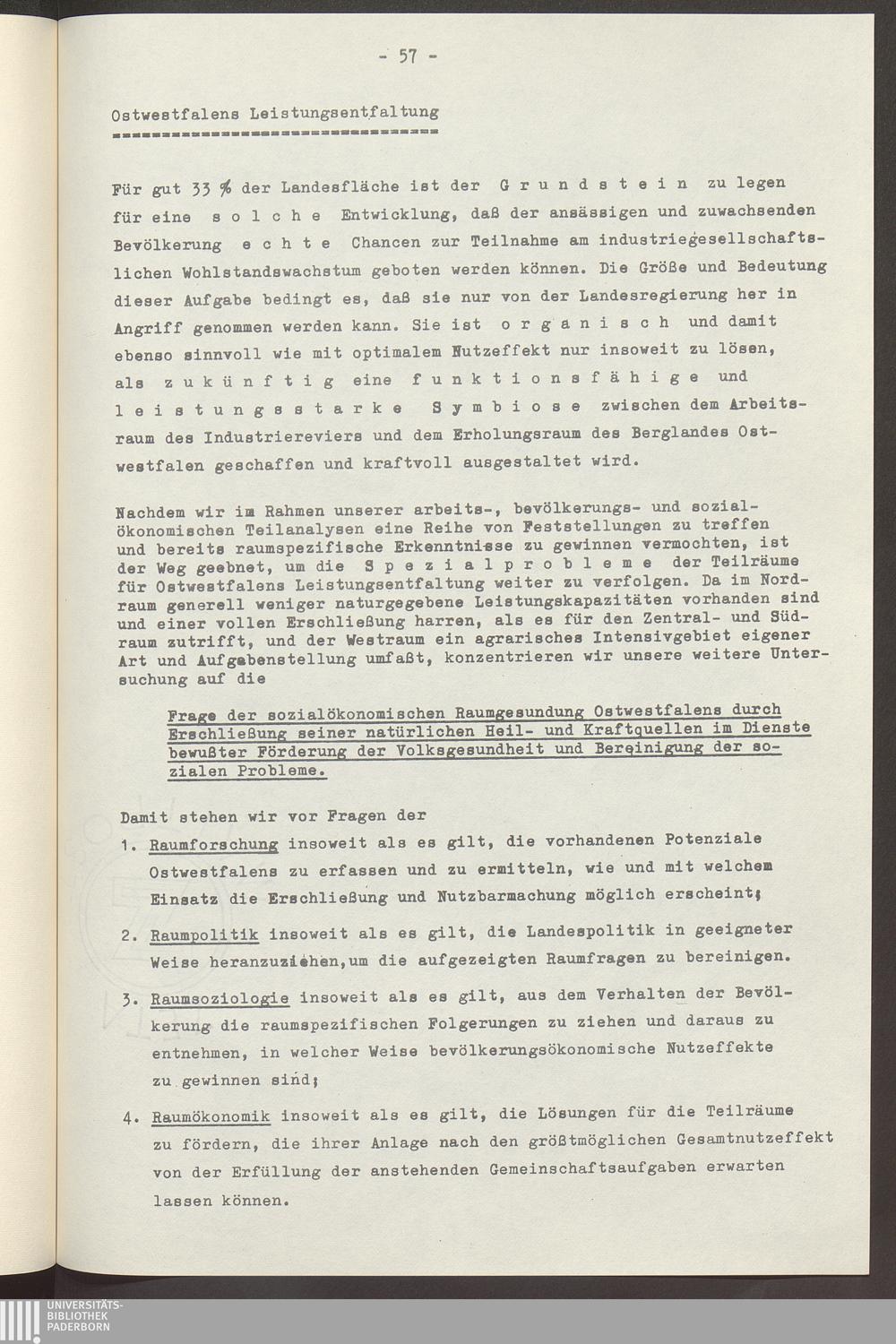 Ostwestfalens Leistungsentfaltung und Wiederbegründung seiner Universität in Paderborn : eine landespolitische Aufgabe