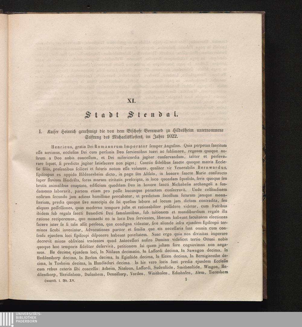 I. Kaiser Heinrich genehmigt die von dem Bischofe Bernward zu Hildesheim unternommene[...]