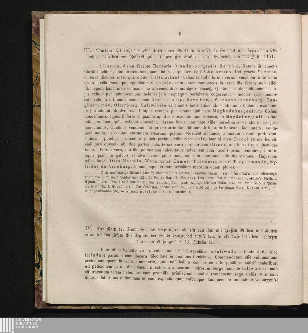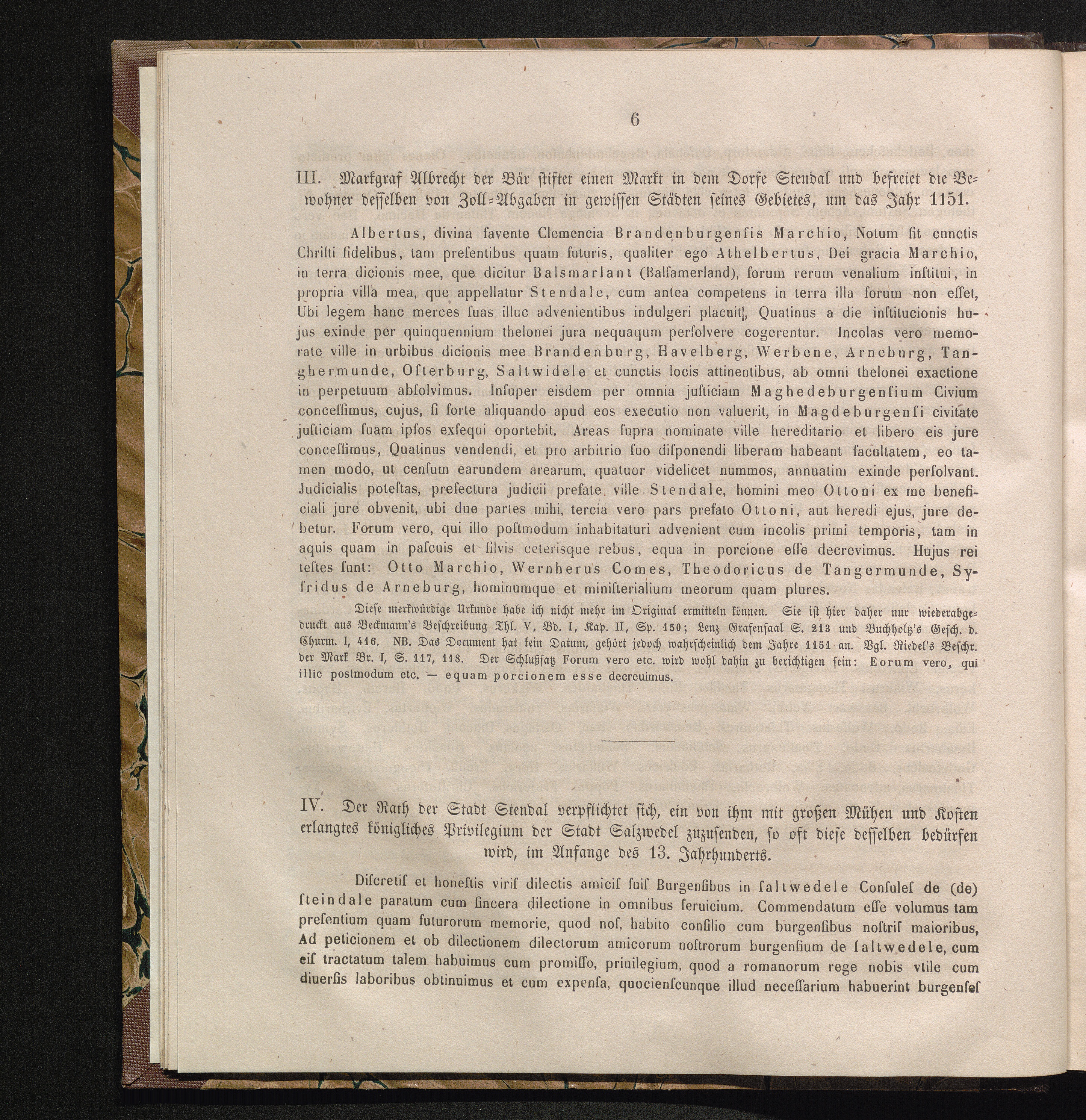 IV. Der Rath der Stadt Stendal verpflichtet sich, ein von ihm mit großen Mühen und[...]