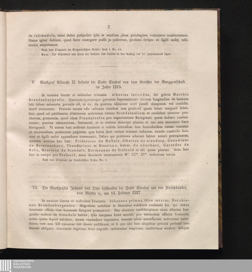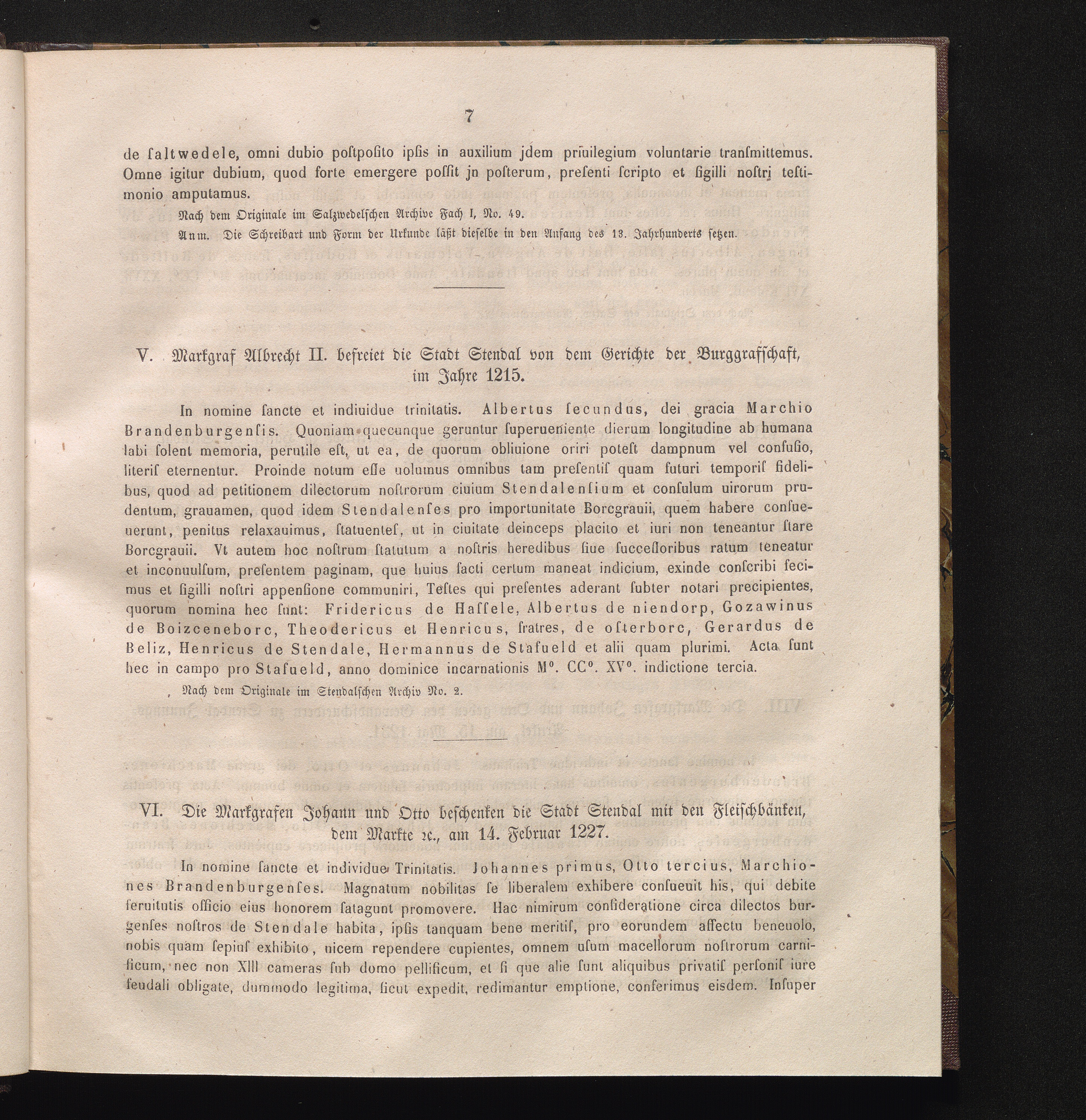 VI. Die Markgrafen Johann und Otto beschenken die Stadt Stendal mit den Fleischbänken.[...]