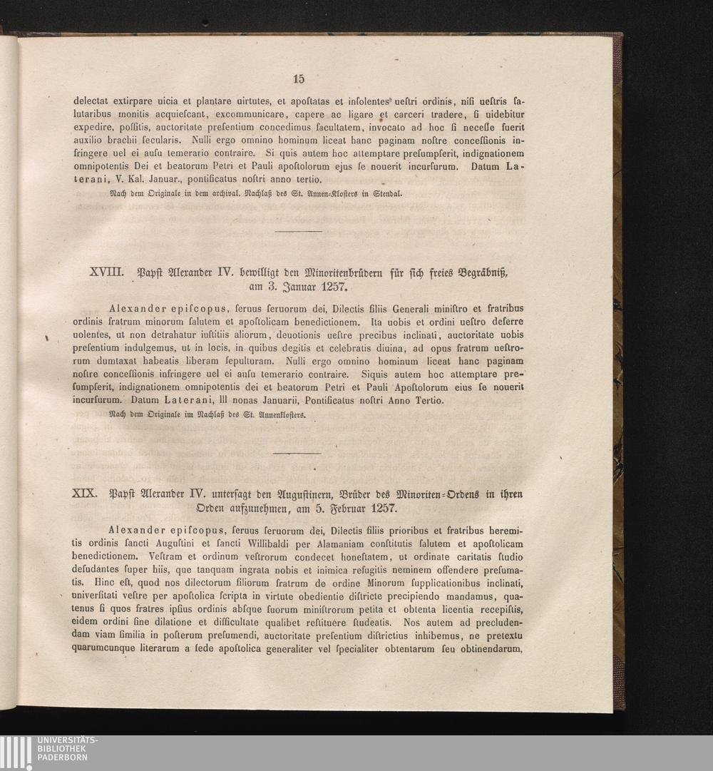 XIX. Papst Alexander IV. untersagt den Augustinern, Brüder des Minoriten-Ordens in[...]