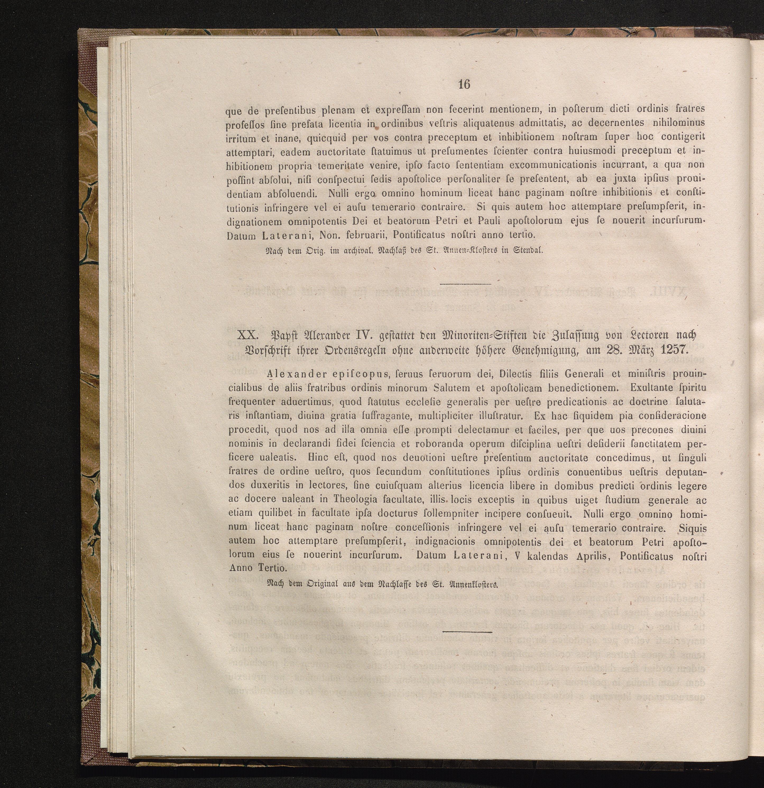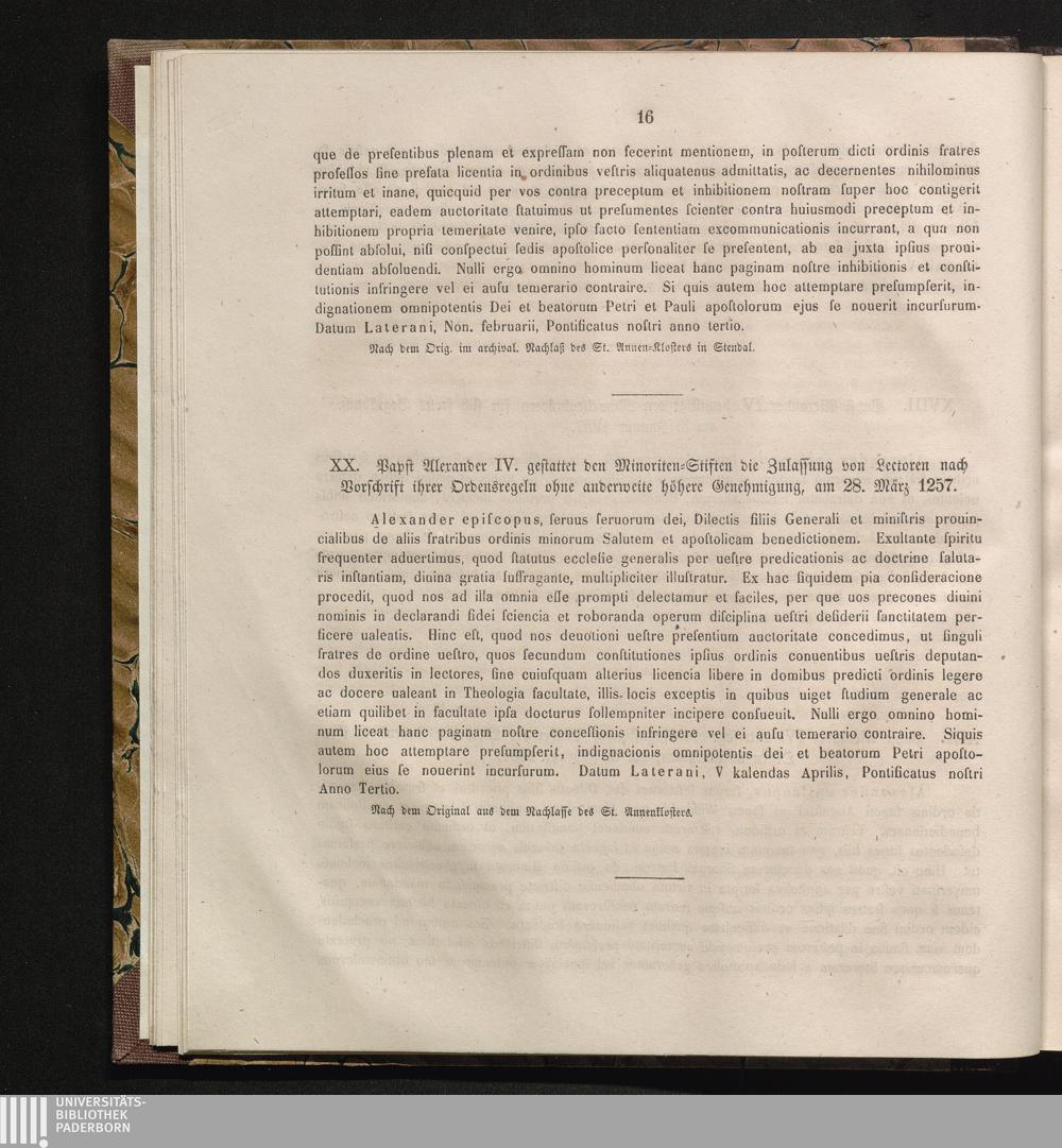 XX. Papst Alexander IV. gestattet den Minoriten-Stiften die Zulassung von Lectoren[...]