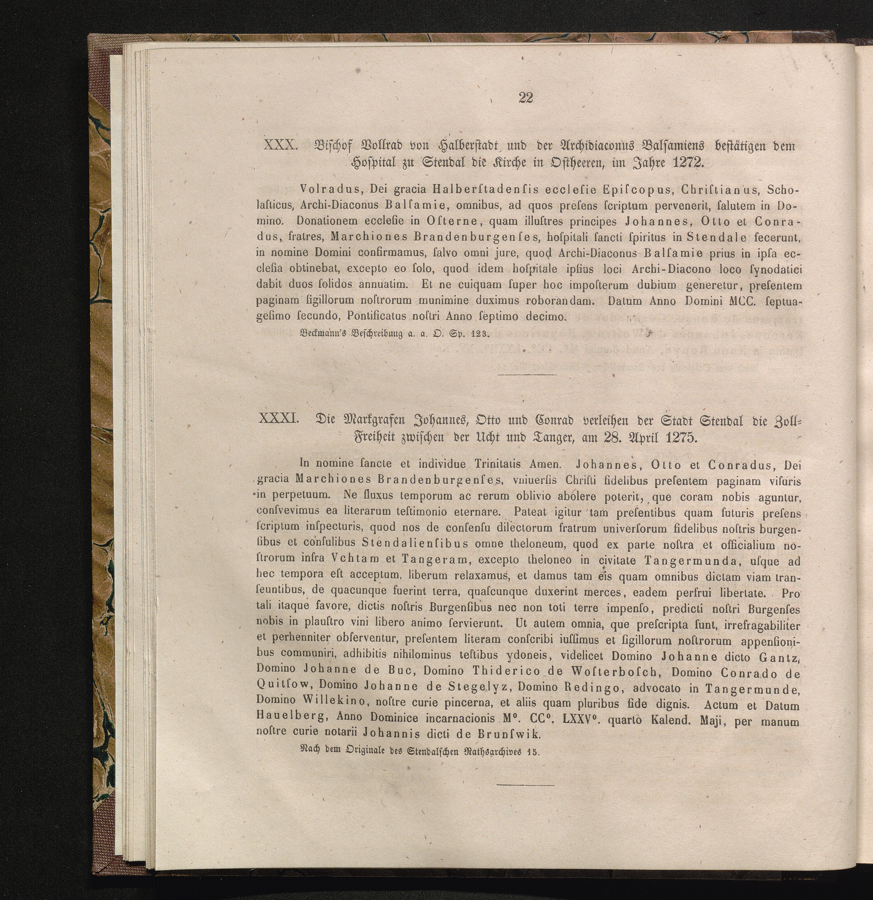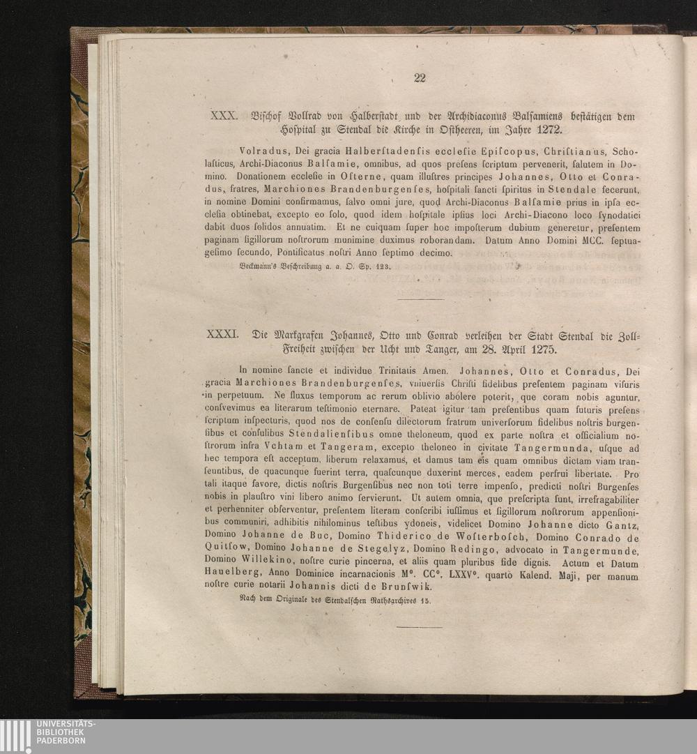 XXXI. Die Markgrafen Johannes, Otto und Conrad verleihen der Stadt Stendal die Zoll-Freiheit[...]
