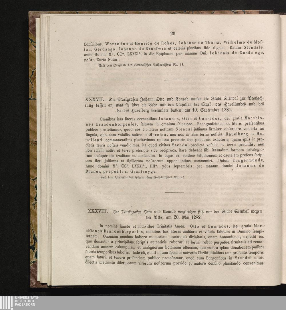 XXXVIII. Die Markgrafen Otto und Conrad vergleichen sich mit der Stadt Stendal wegen[...]