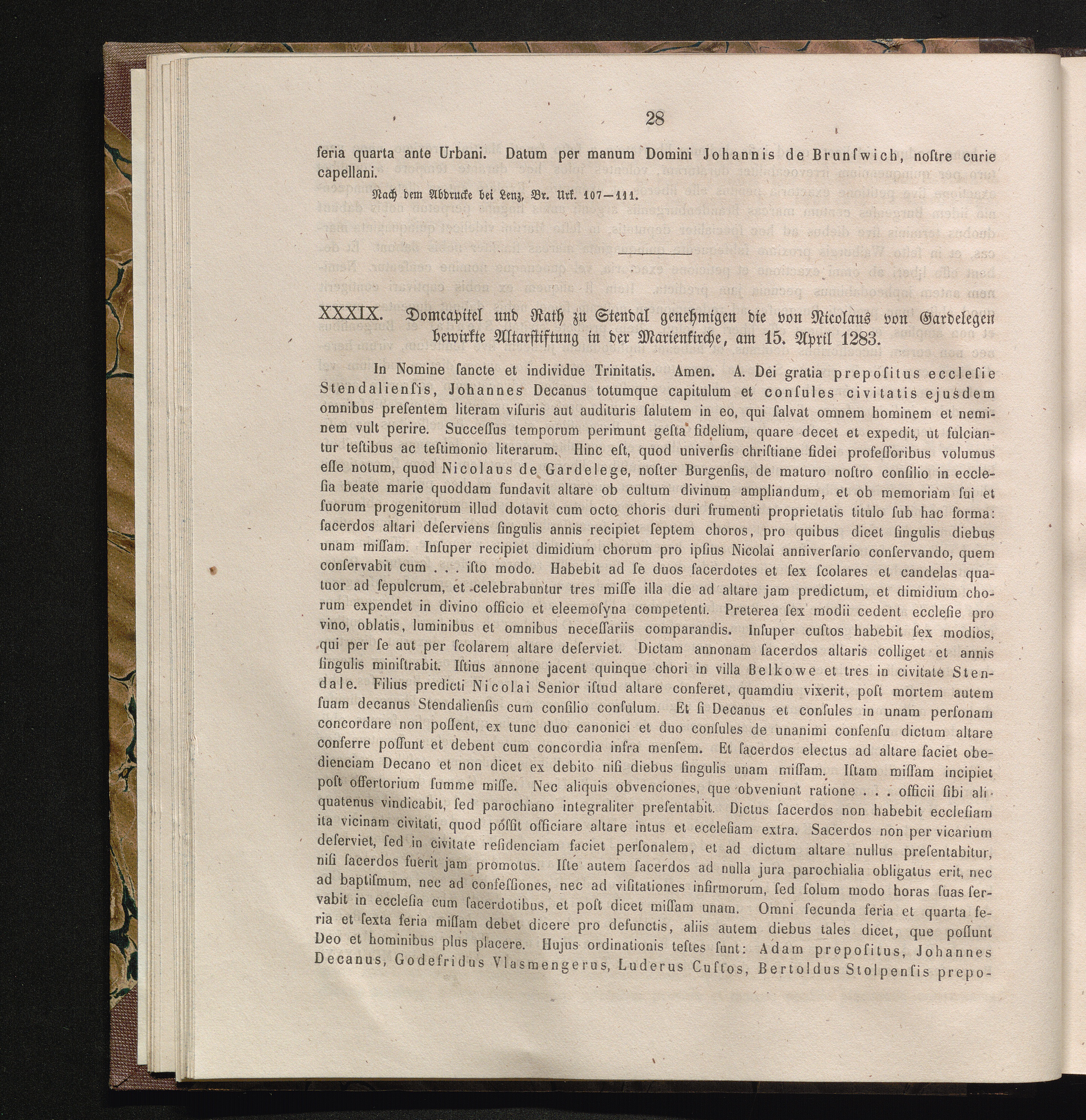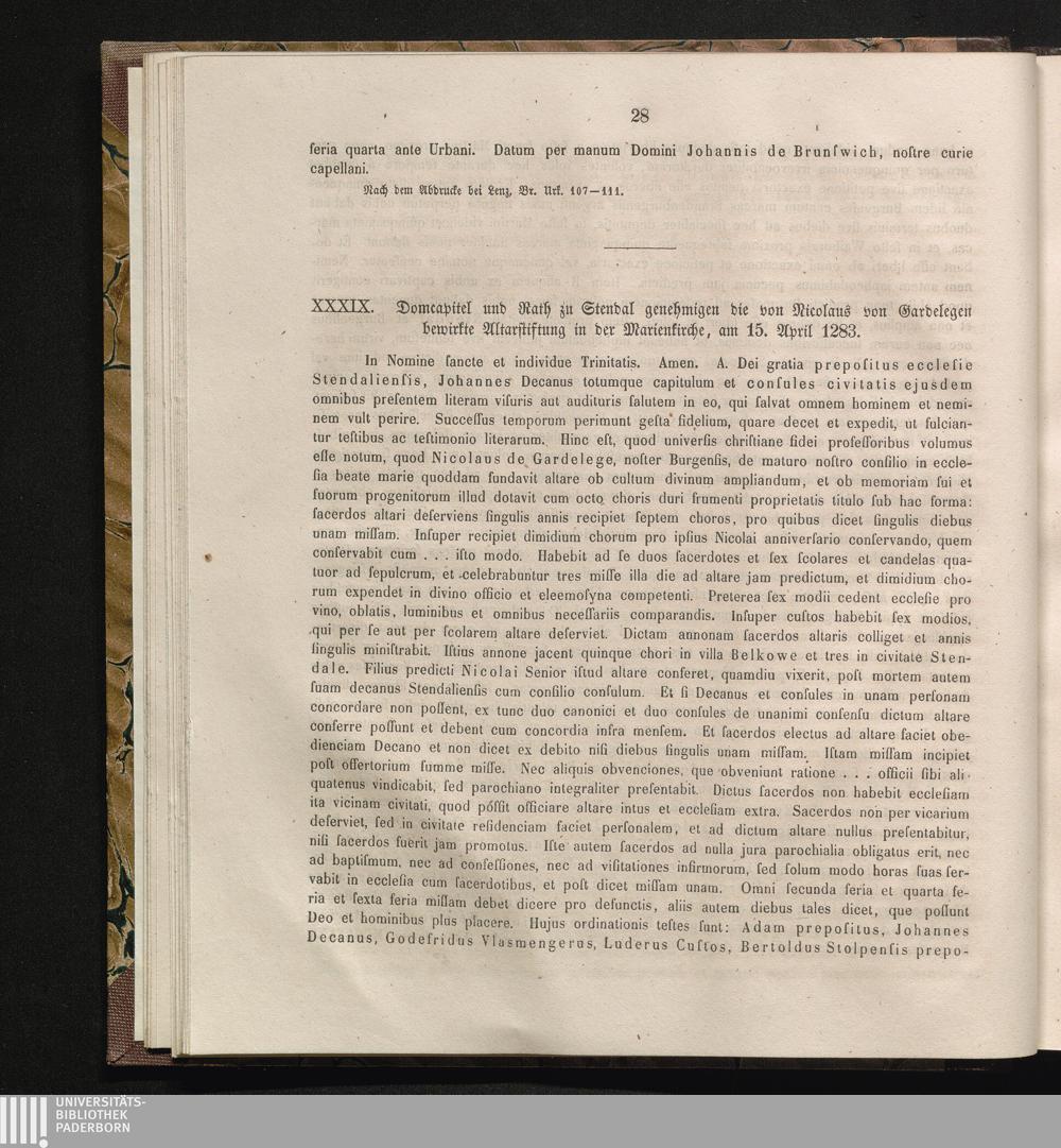 XXXIX. Domcapitel und Rath zu Stendal genehmigen die von Nicolaus von Gardelegen[...]