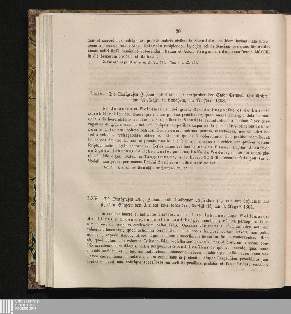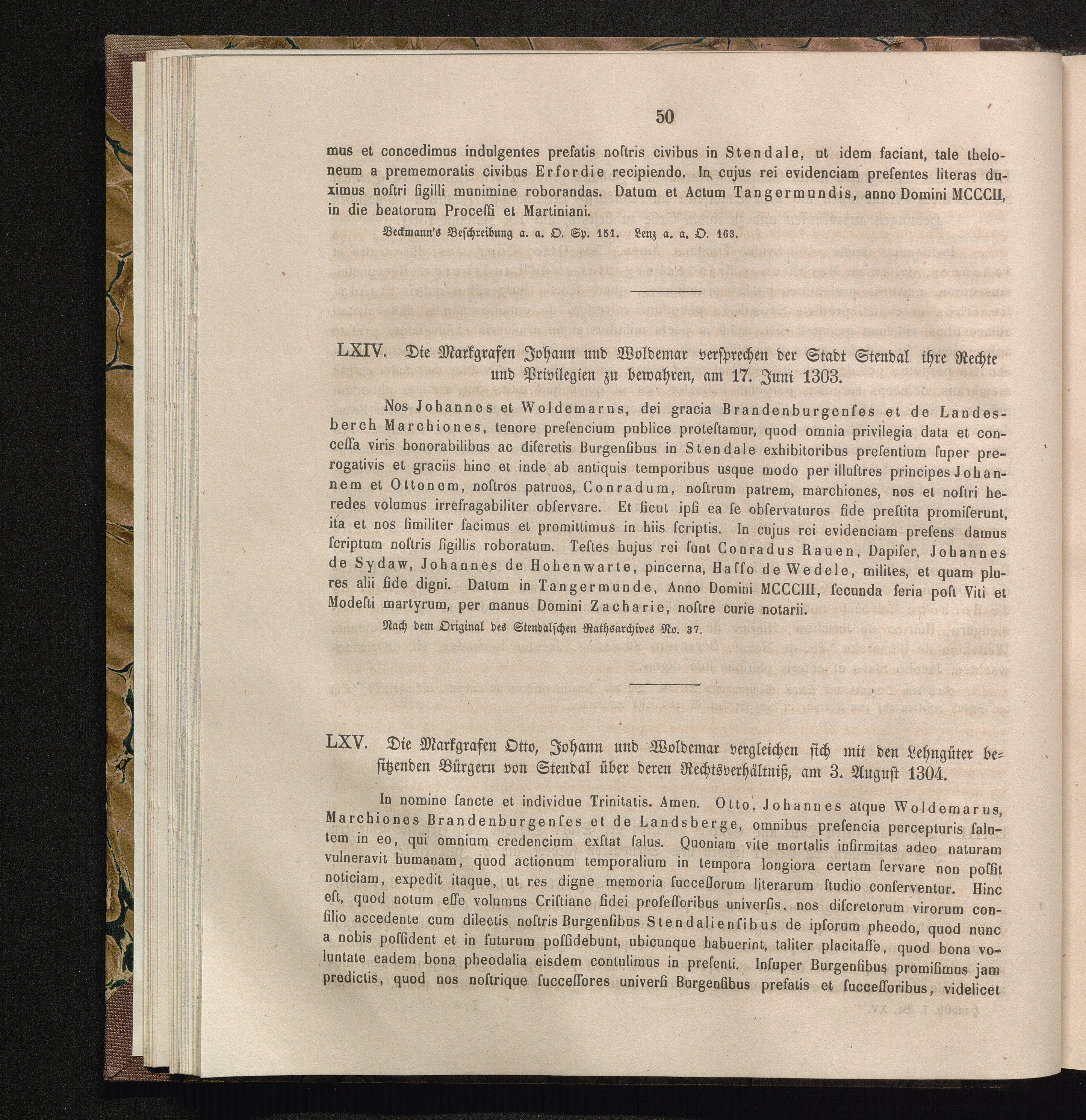 LXV. Die Markgrafen Otto, Johann und Woldemar vergleichen sich mit den Lehngüter[...]