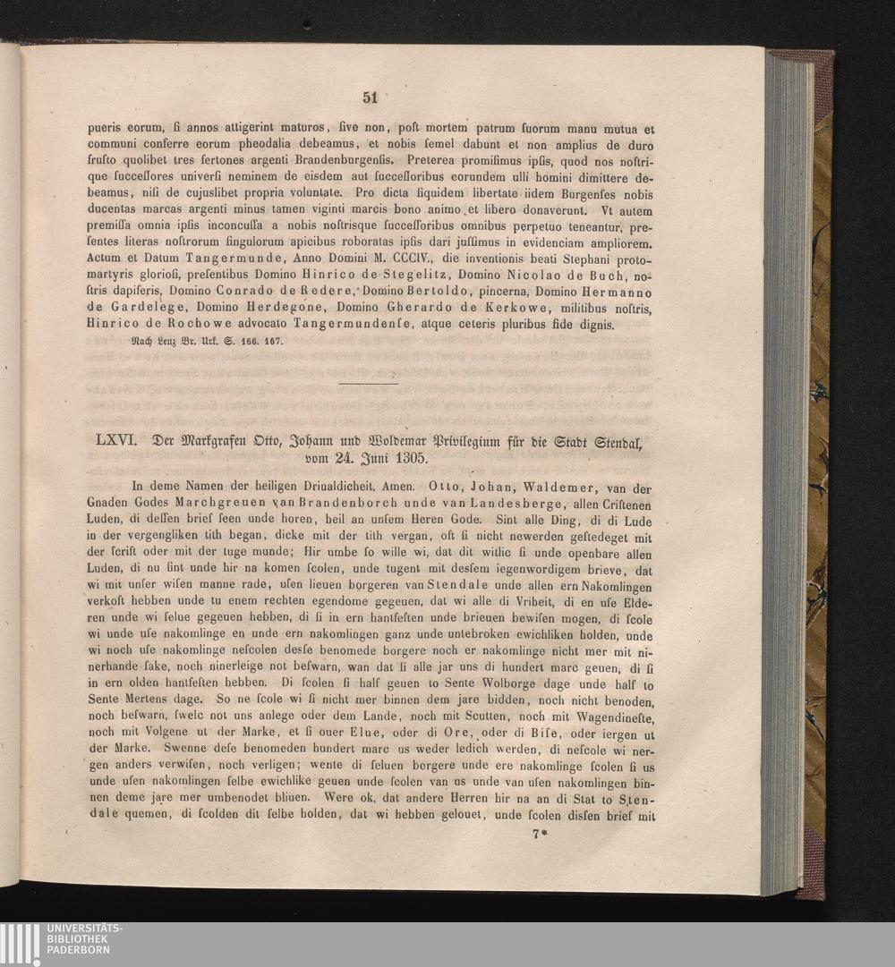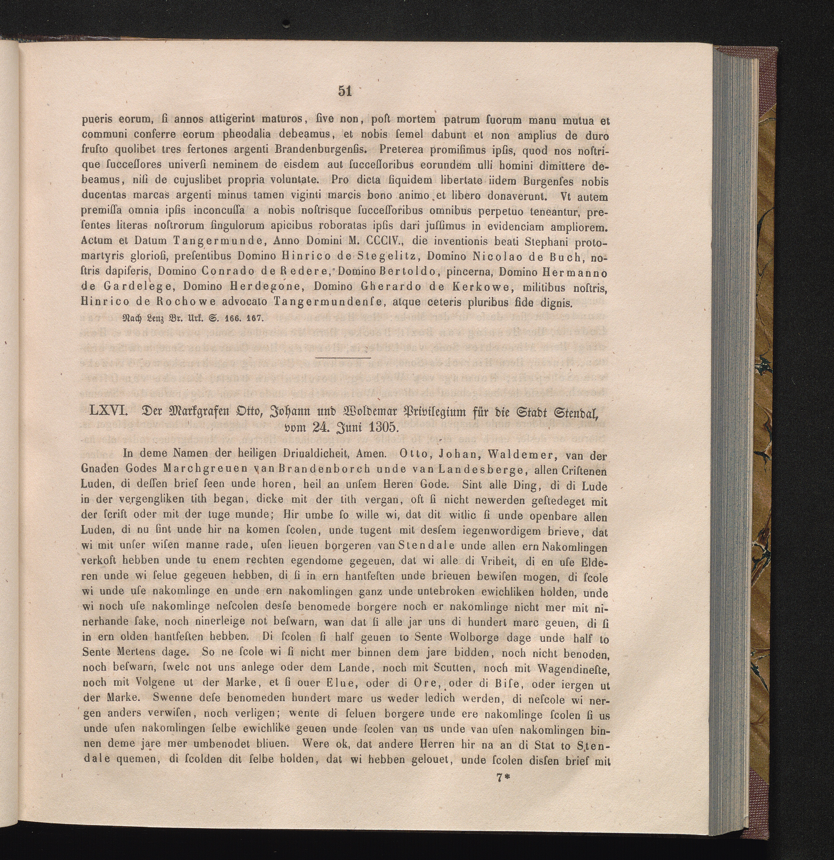 LXVI. Der Markgrafen Otto, Johann und Woldemar Privilegium für die Stadt Stendal,[...]
