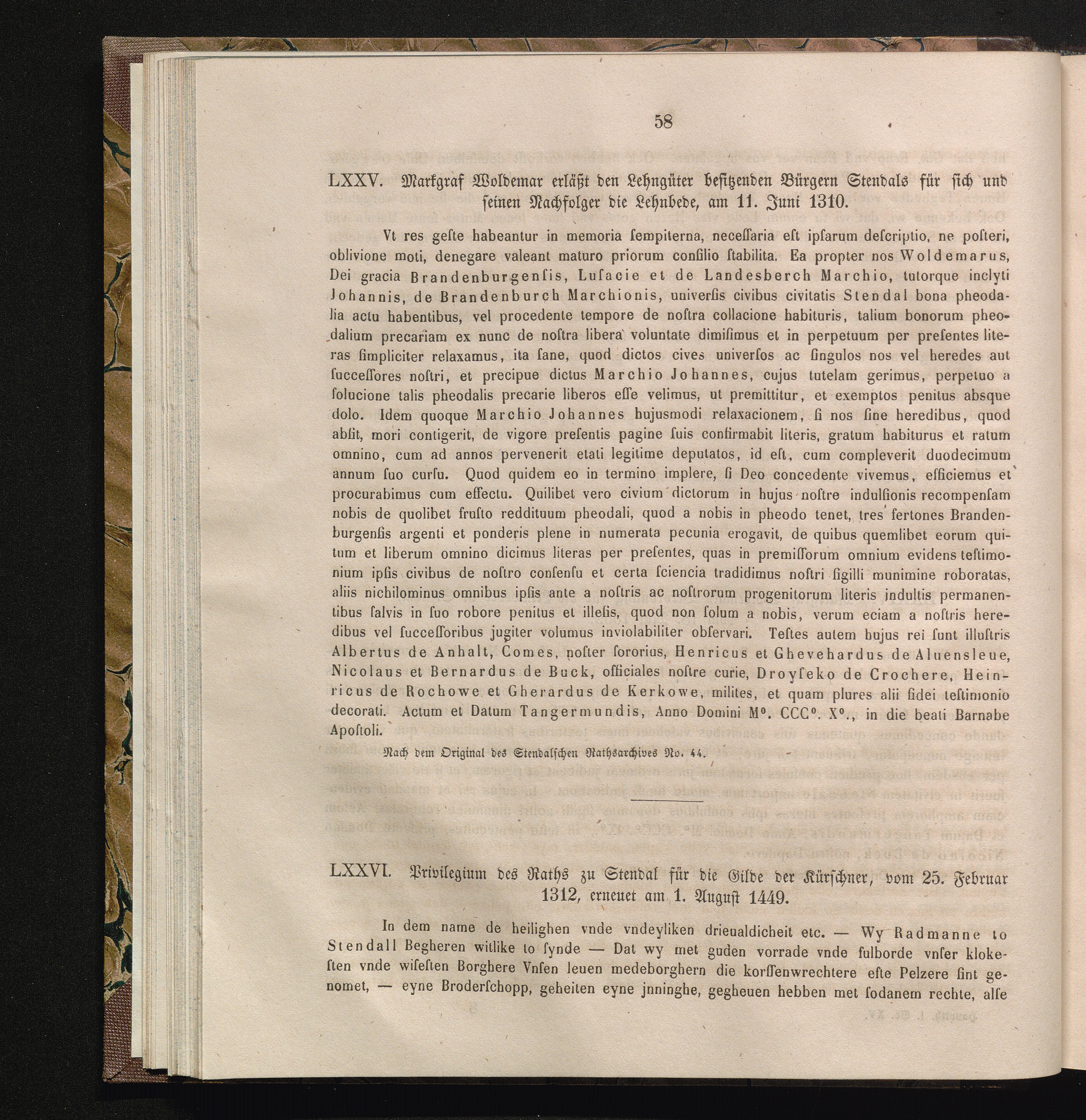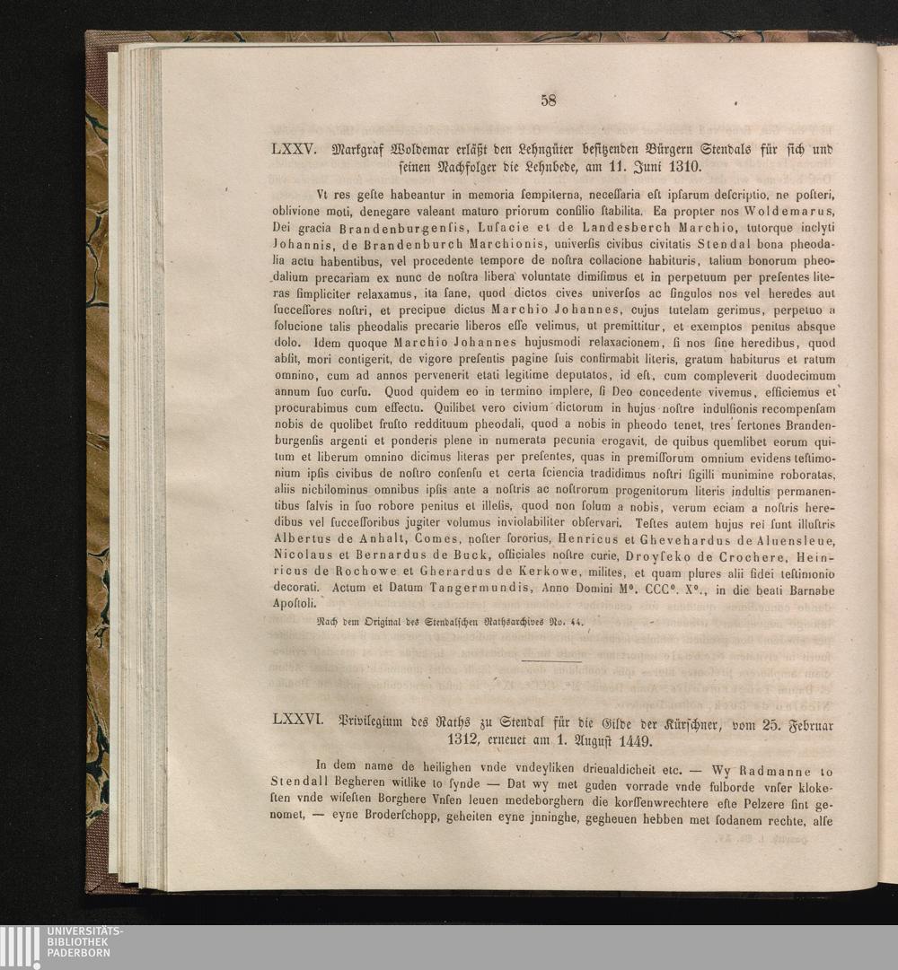 LXXVI. Privilegium des Raths zu Stendal für die Gilde der Kürschner, vom 25. Februar[...]