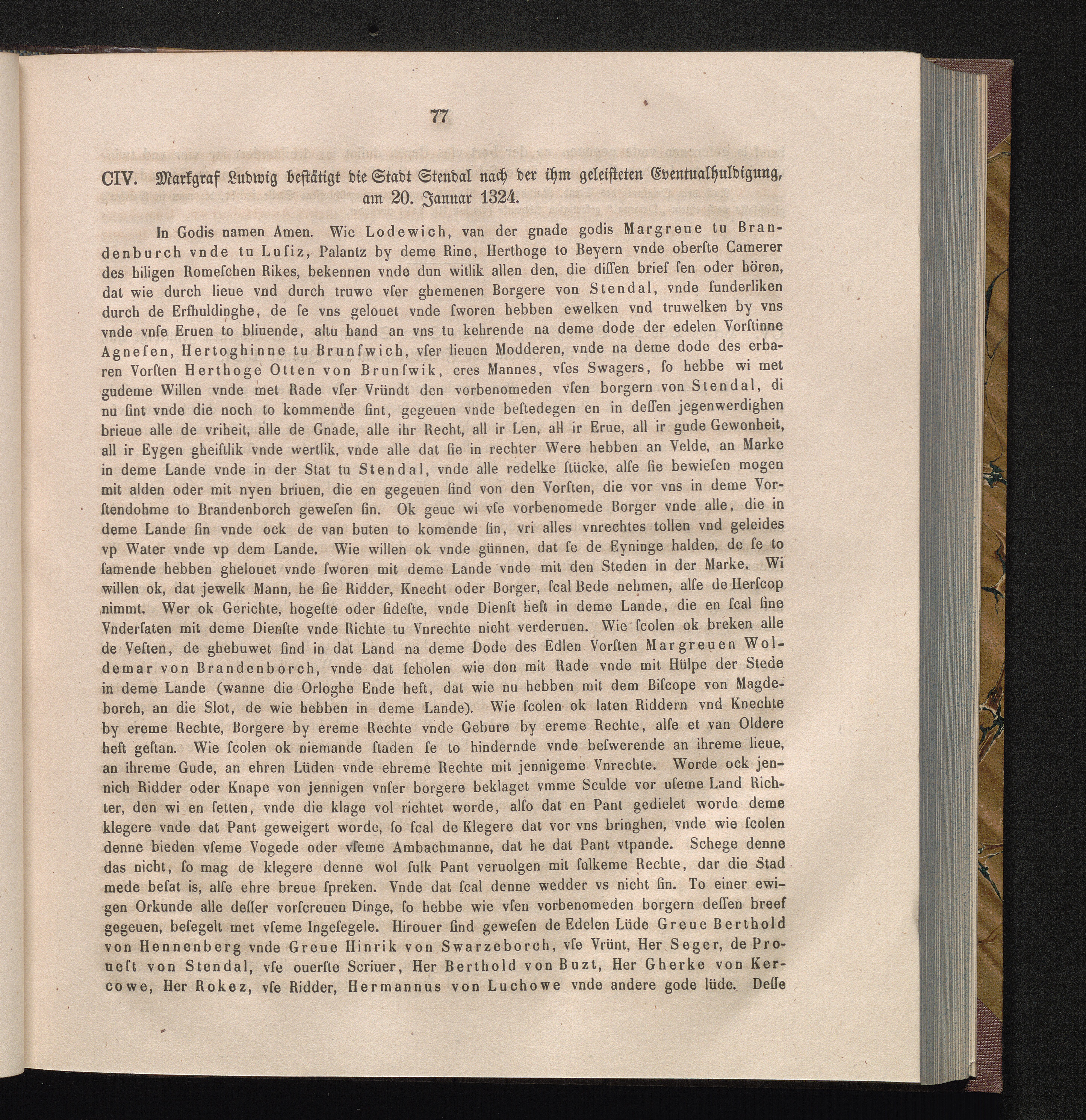 CIV. Markgraf Ludwig bestätigt die Stadt Stendal nach der ihm geleisteten Eventualhuldigung,[...]