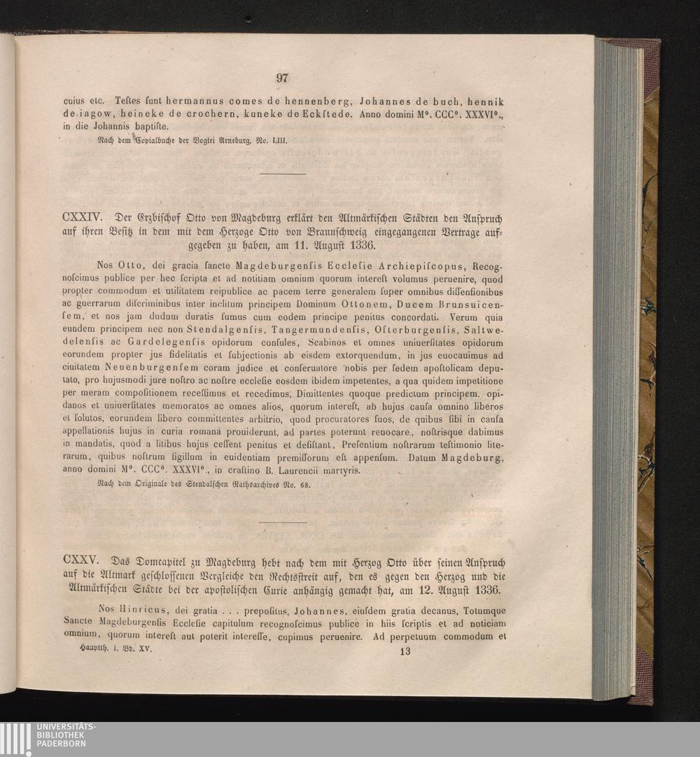 CXXV. Das Domcapitel zu Magdeburg hebt nach dem mit Herzog Otto über seinen Anspruch[...]