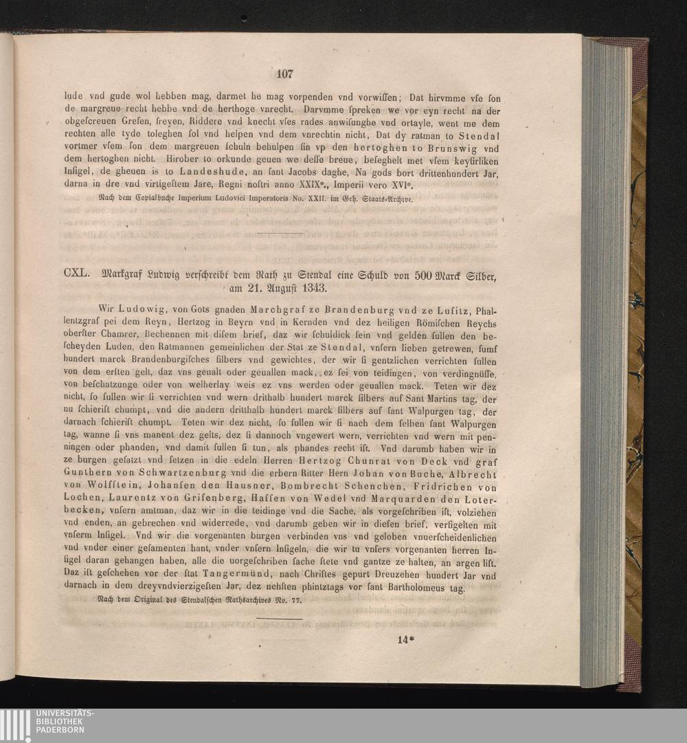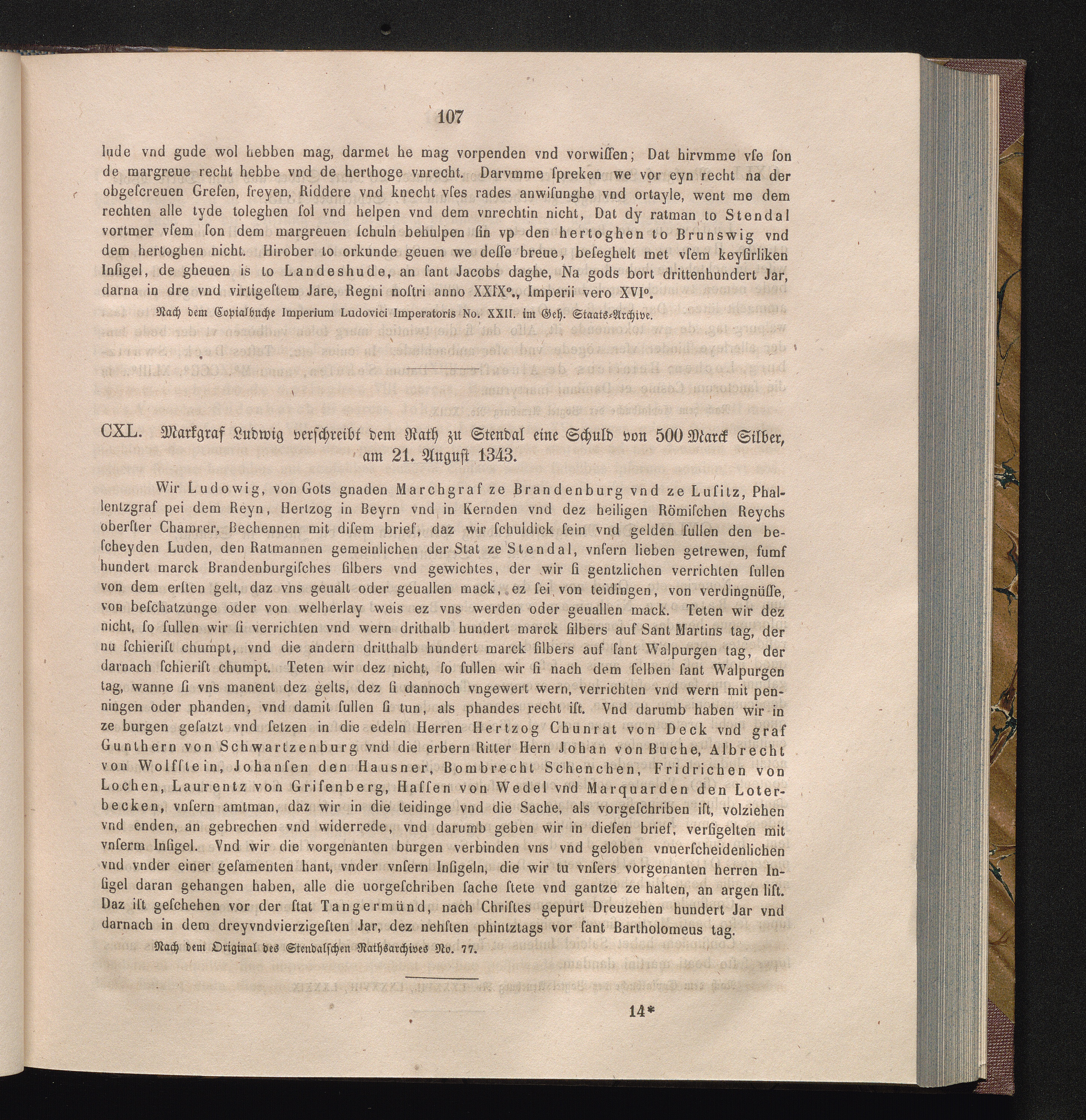 CXL. Markgraf Ludwig verschreibt dem Rath zu Stendal eine Schuld von 500 Marck Silber,[...]