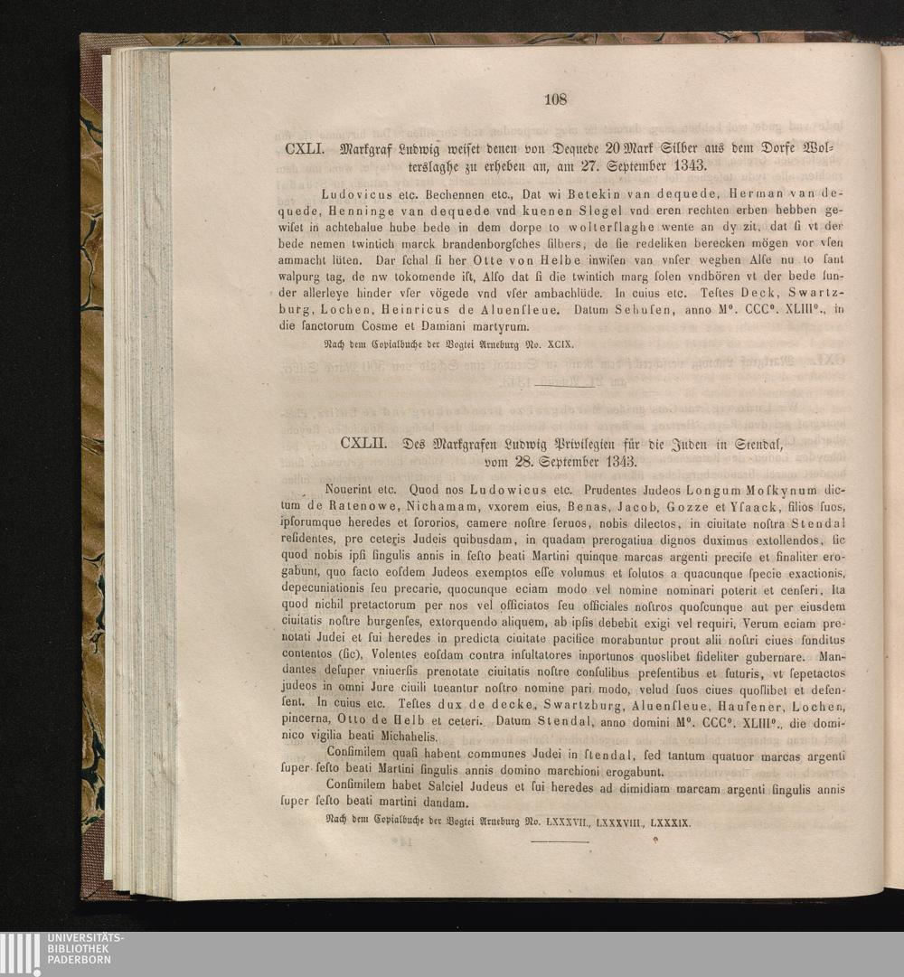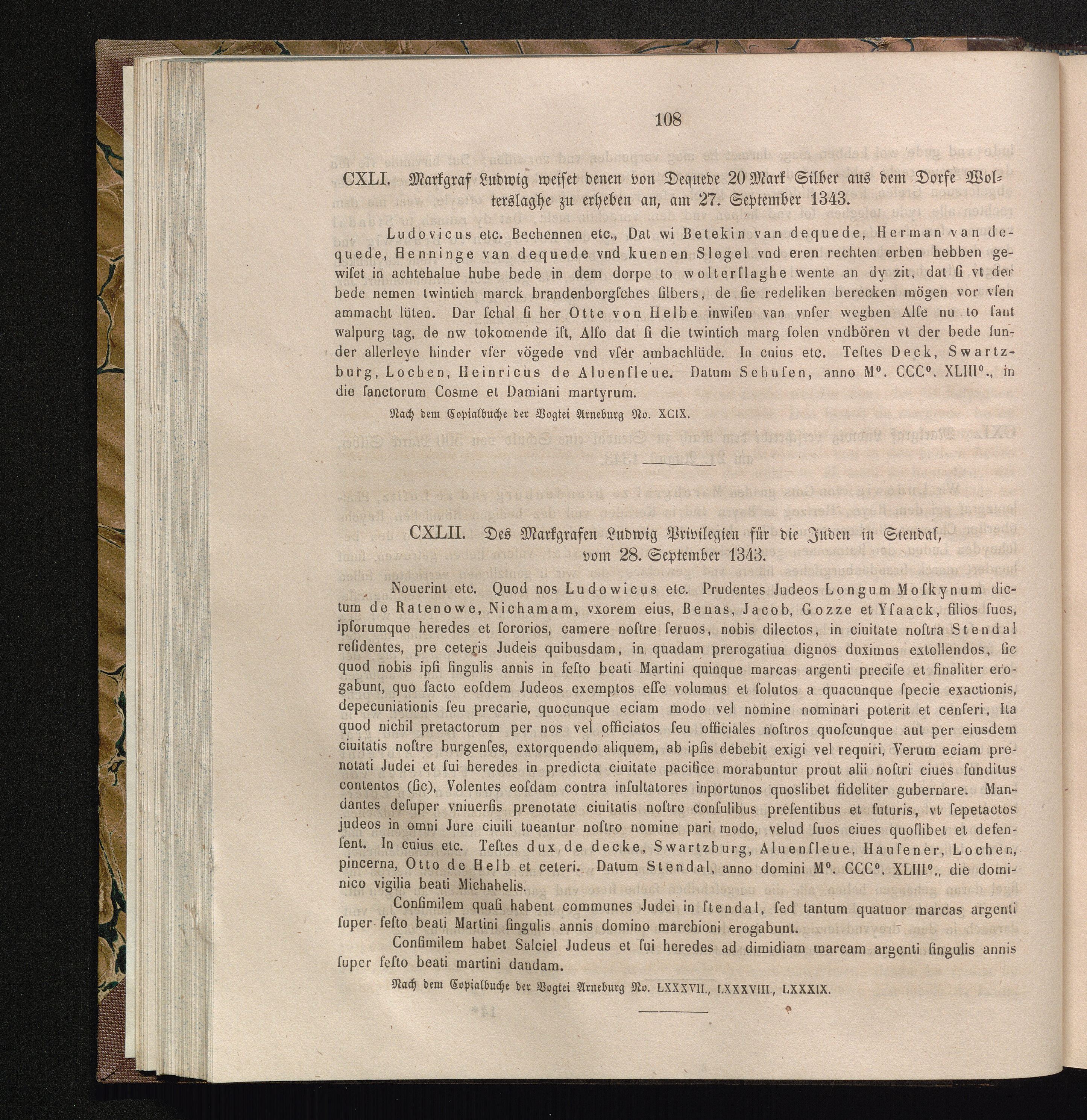 CXLII. Des Markgrafen Ludwig Privilegien für die Juden in Stendal, vom 28. September[...]