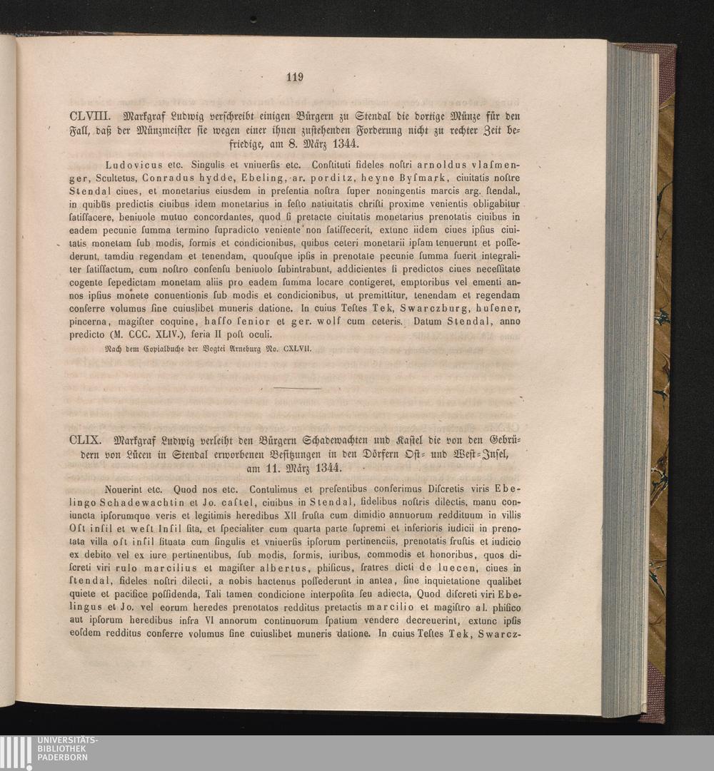 CLIX. Markgraf Ludwig verleiht den Bürgern Schadewachten und Kastel die von den Gerüdern[...]