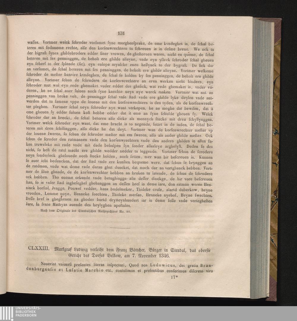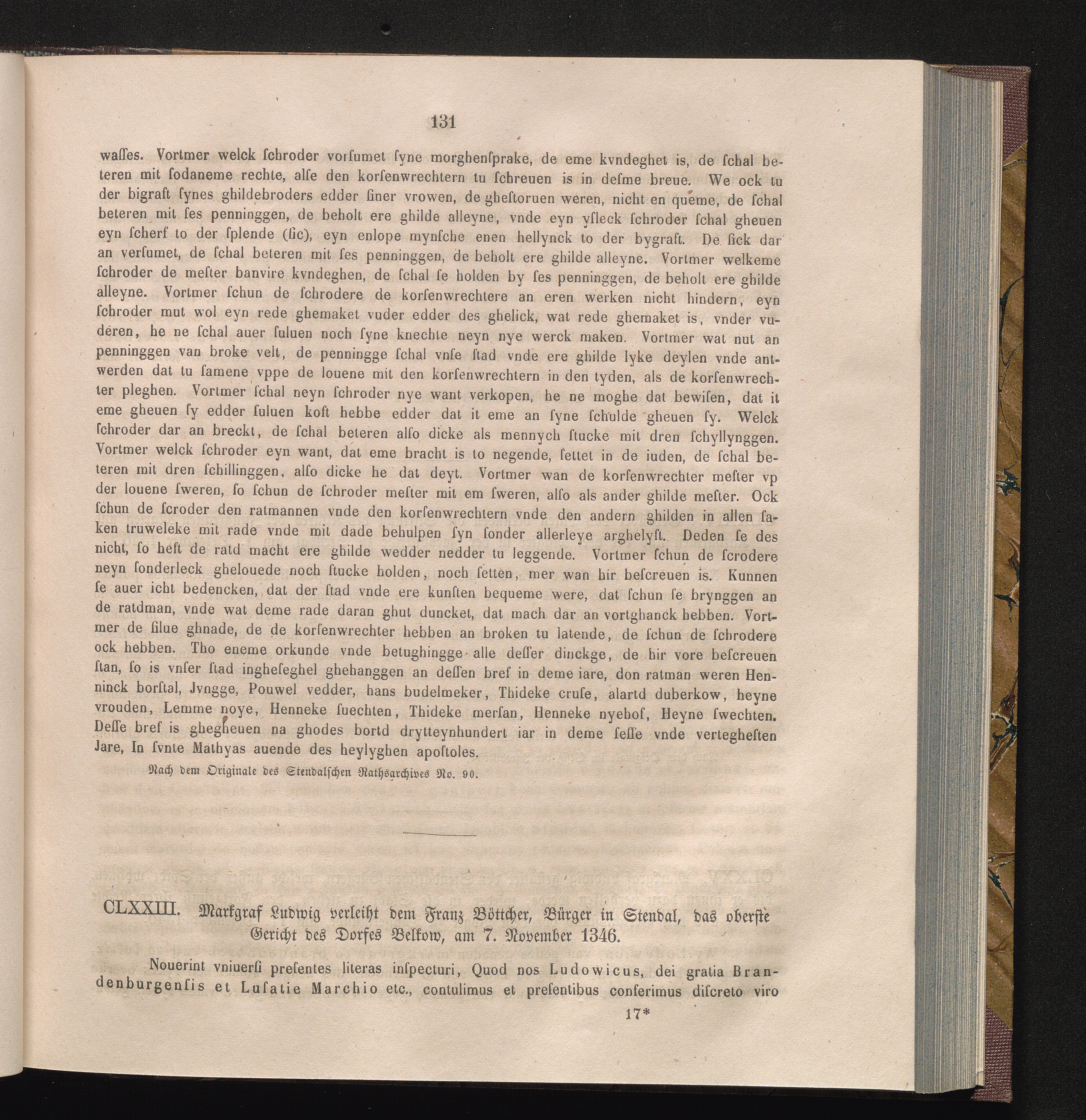 CLXXIII. Markgraf Ludwig verleiht dem Franz Böttcher, Bürger in Stendal, das oberste[...]