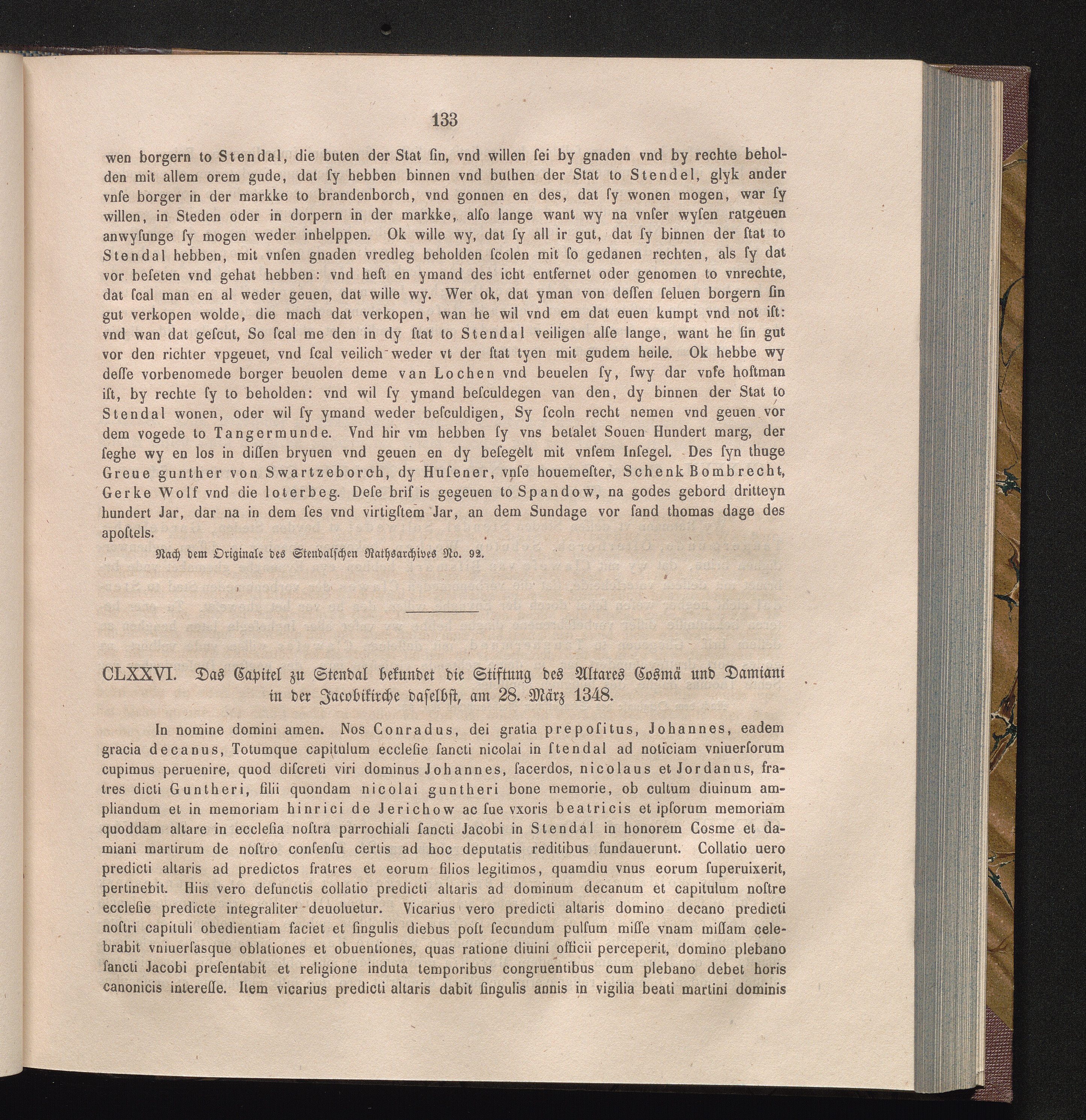CLXXVI. Das Capitel zu Stendal bekundet die Stiftung des Altares Cosmä und Damiani[...]
