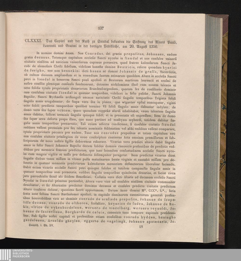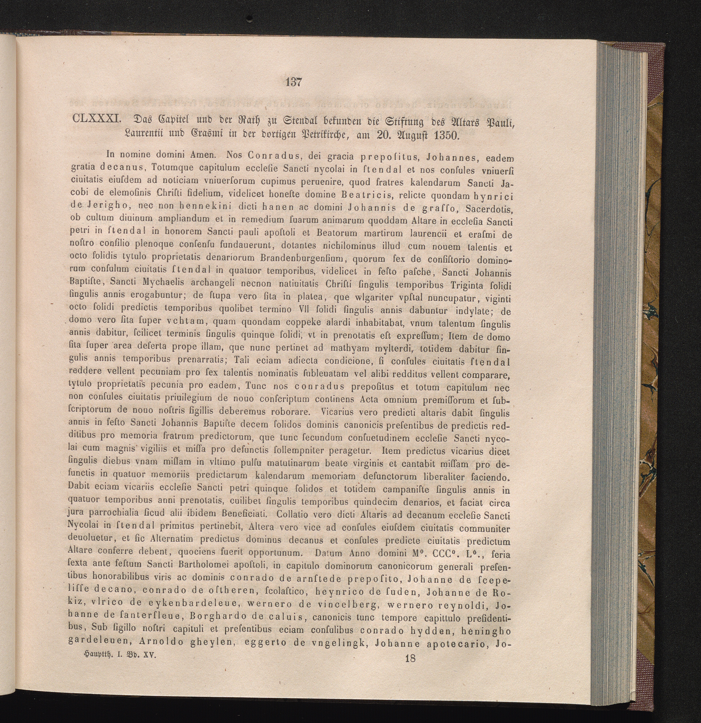 CLXXXI. Das Capitel und der Rath zu Stendal bekunden die Stiftung des Altars Pauli,[...]