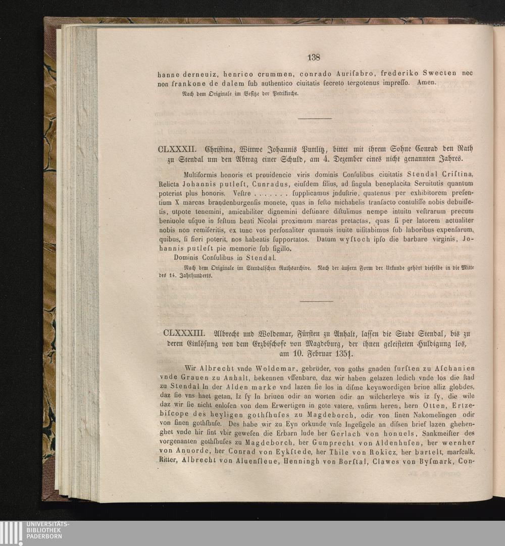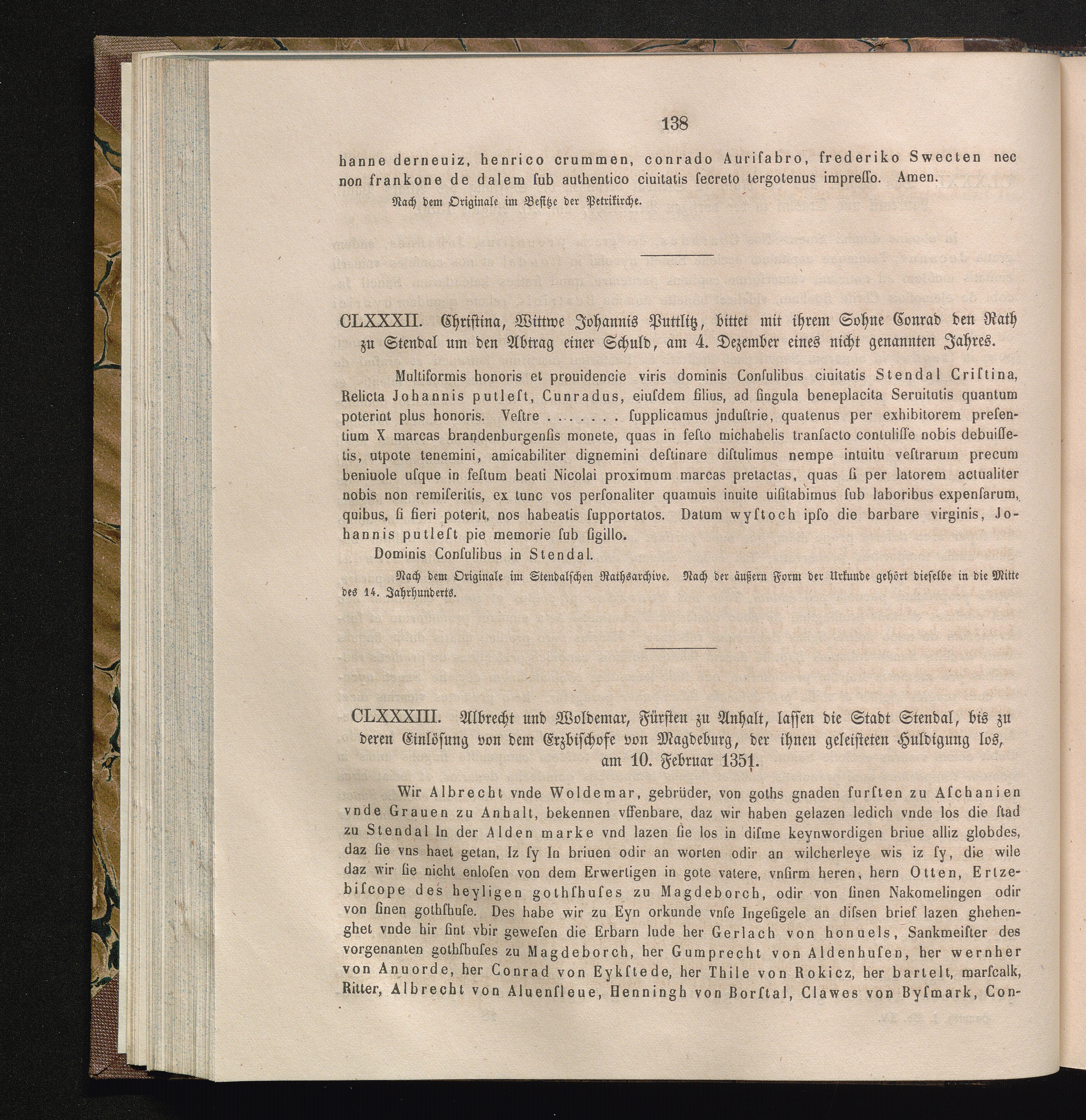 CLXXXIII. Albrecht und Woldemar, Fürsten zu Anhalt, lassen die Stadt Stendal, bis[...]