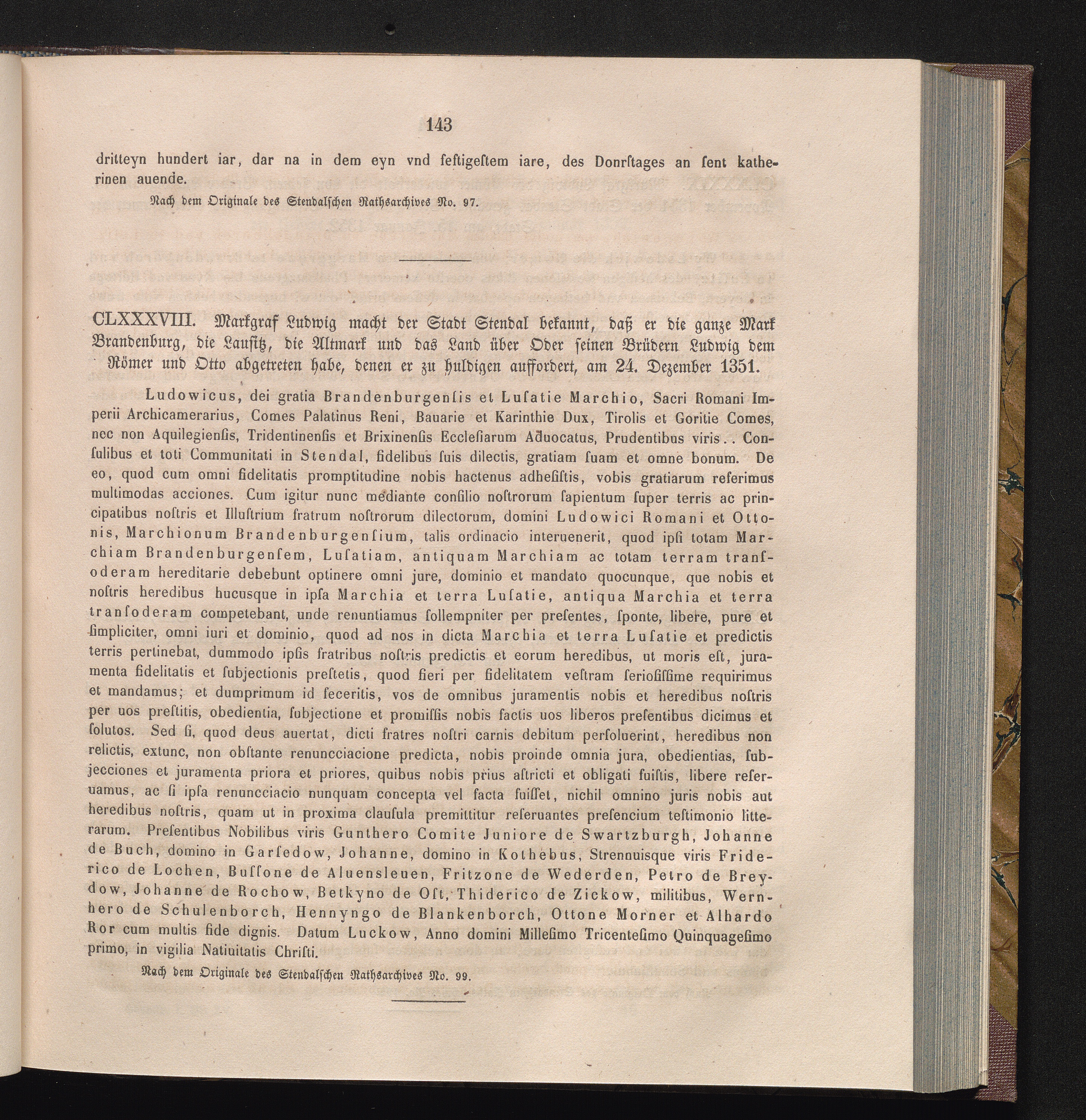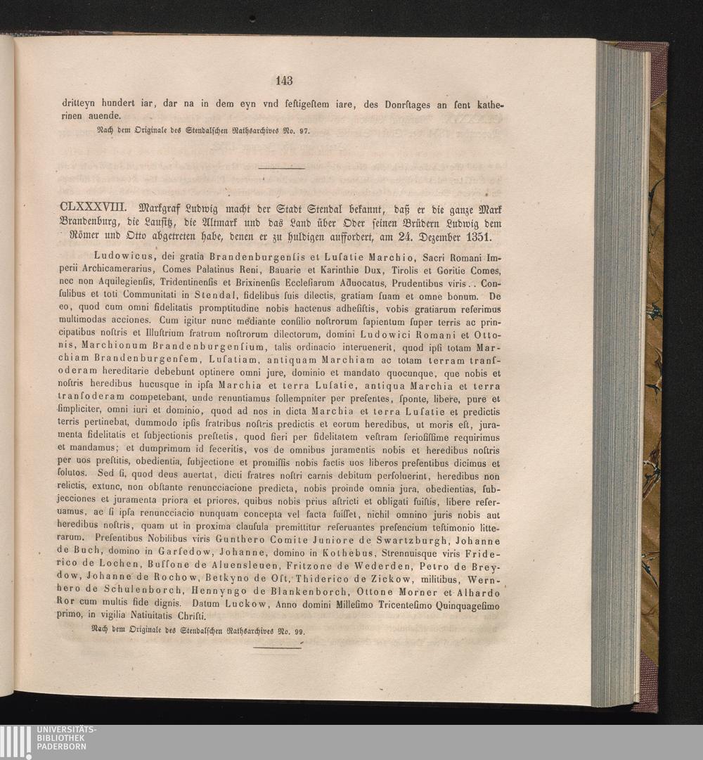 CLXXXVIII. Markgraf Ludwig macht der Stadt Stendal bekannt, daß er die ganze Mark[...]