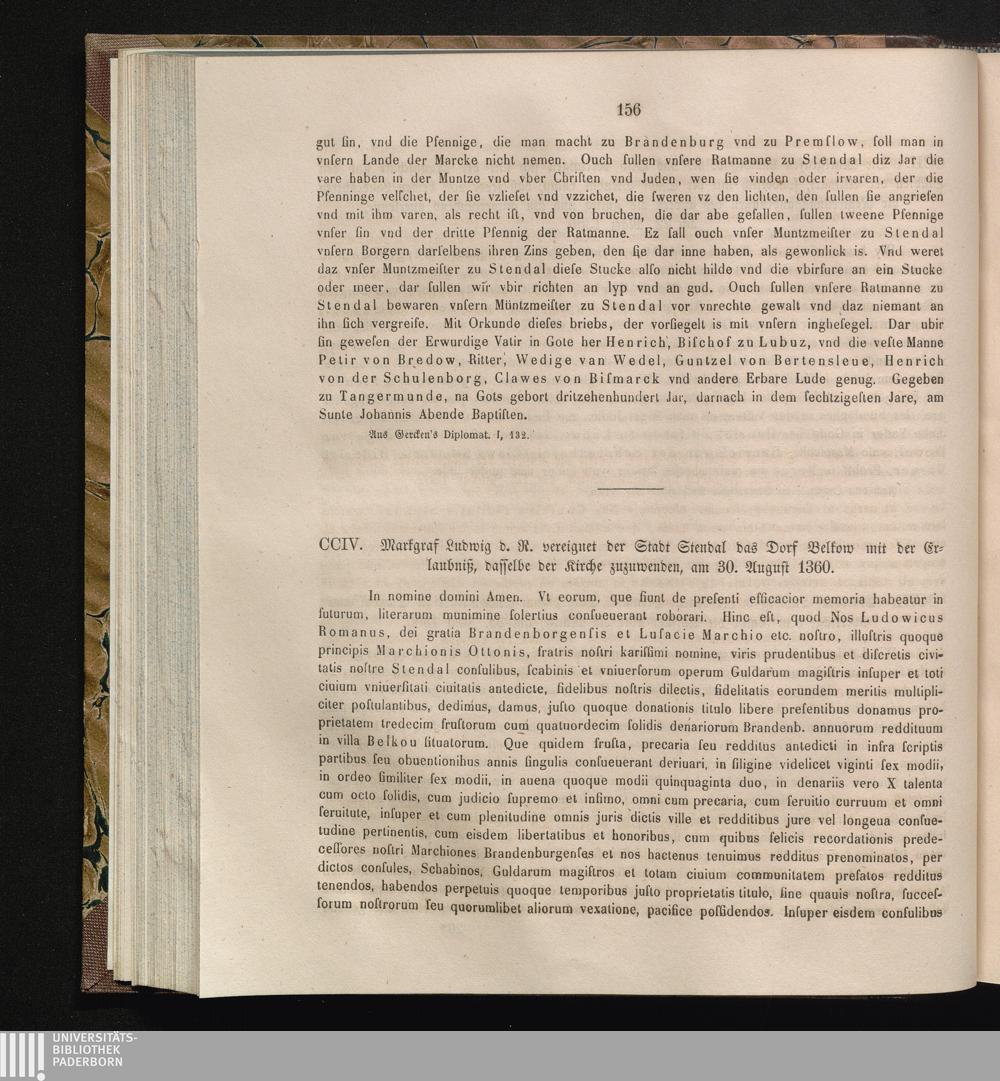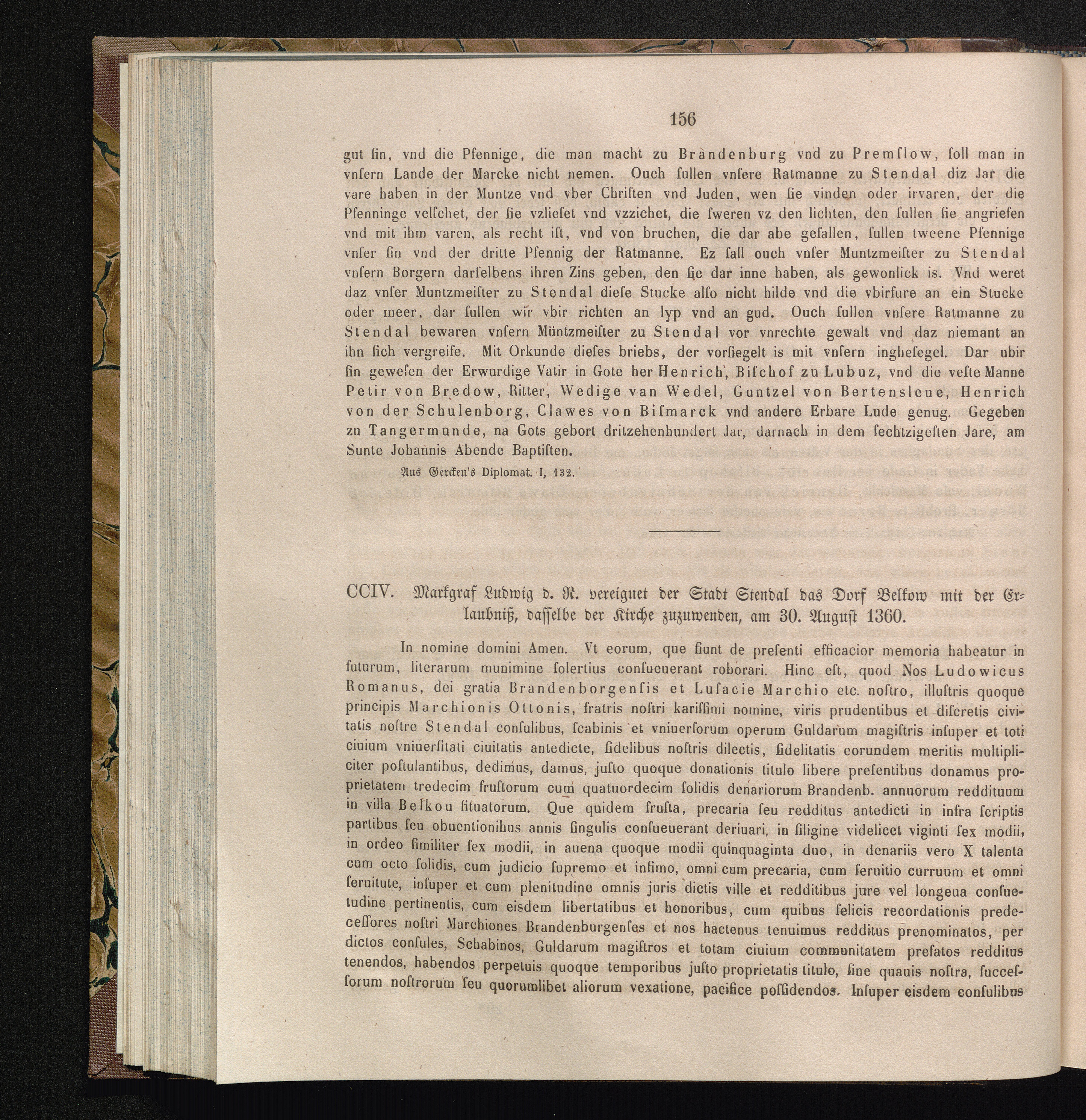 CCIV. Markgraf Ludwig d. R. vereignet der Stadt Stendal das Dorf Belkow mit der Erlaubniß,[...]