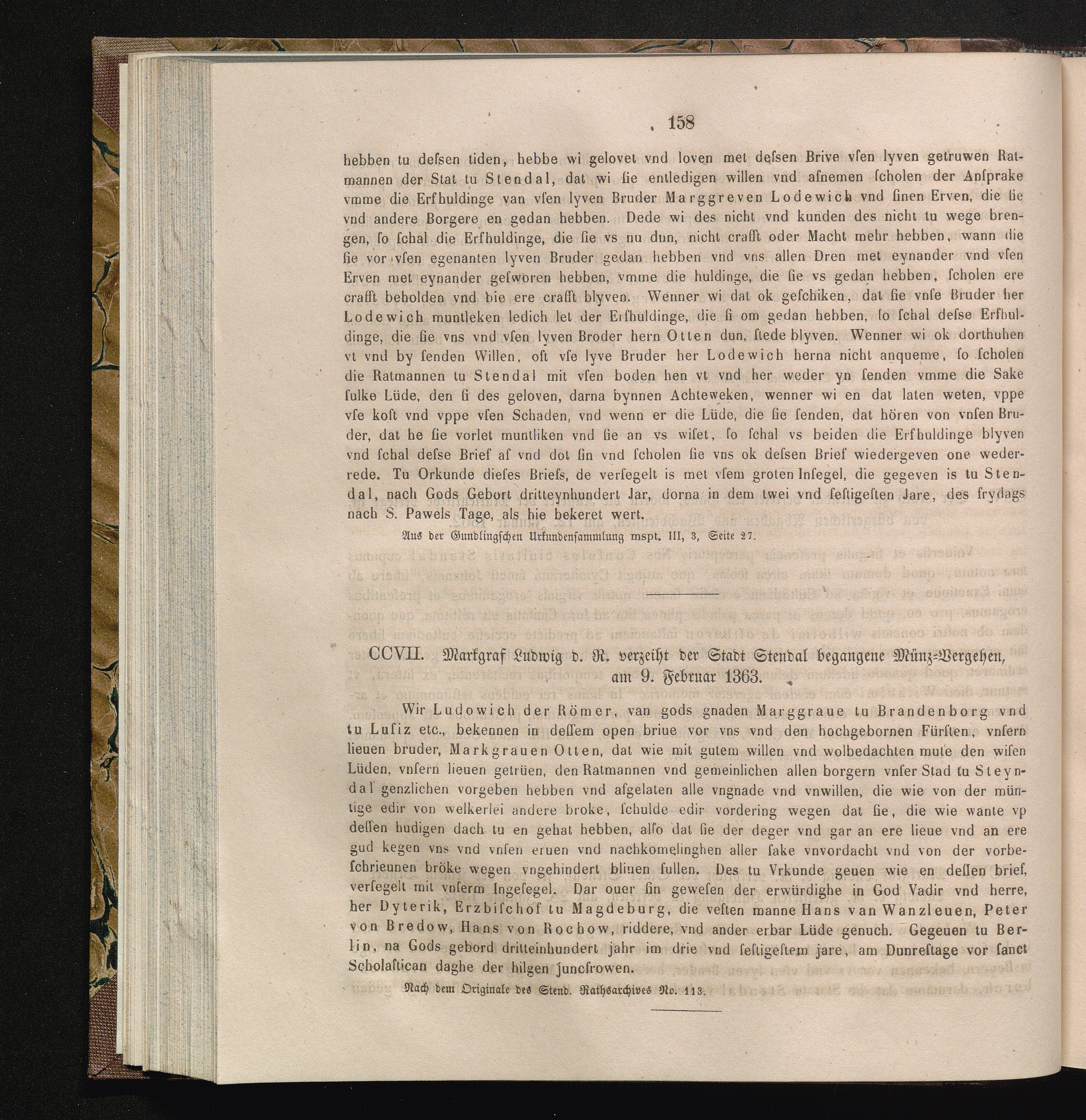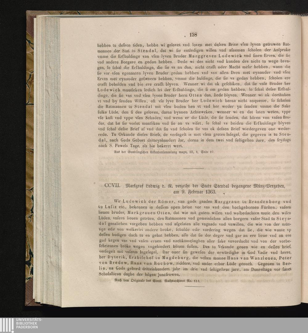 CCVII. Markgraf Ludwig d. R. verzeiht der Stadt Stendal begangene Münz-Vergehen,[...]