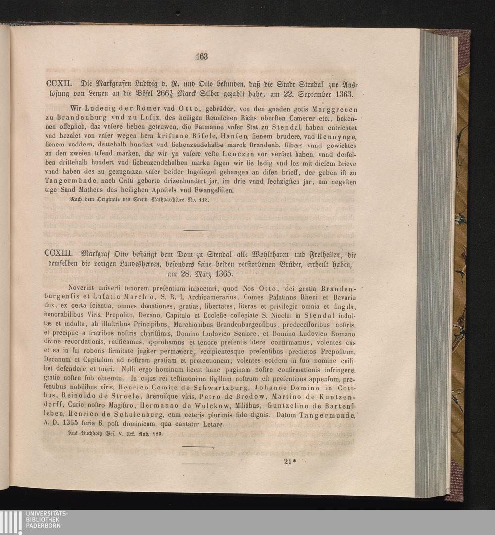 CCXIII. Markgraf Otto bestätigt dem Dom zu Stendal alle Wohlthaten und Freiheiten,[...]