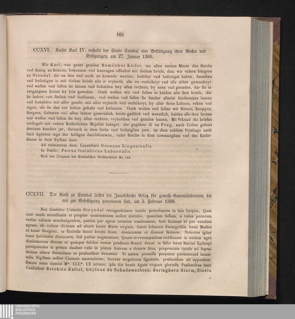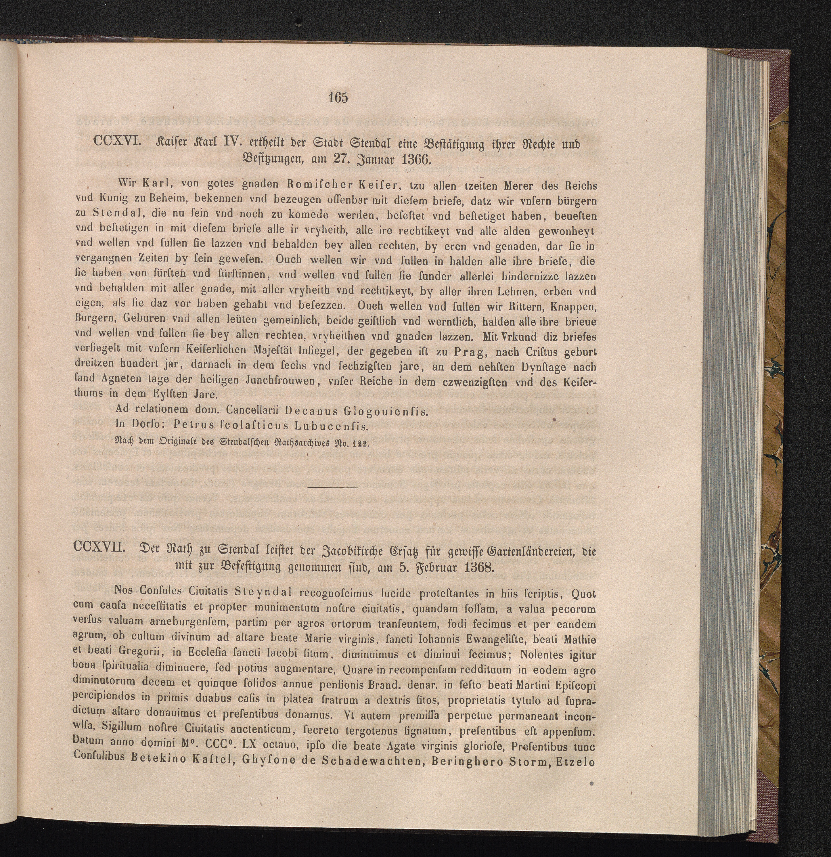 CCXVII. Der Rath zu Stendal leistet der Jacobikirche Ersatz für gewisse Gartenländereien,[...]