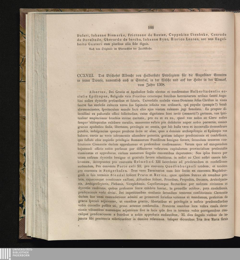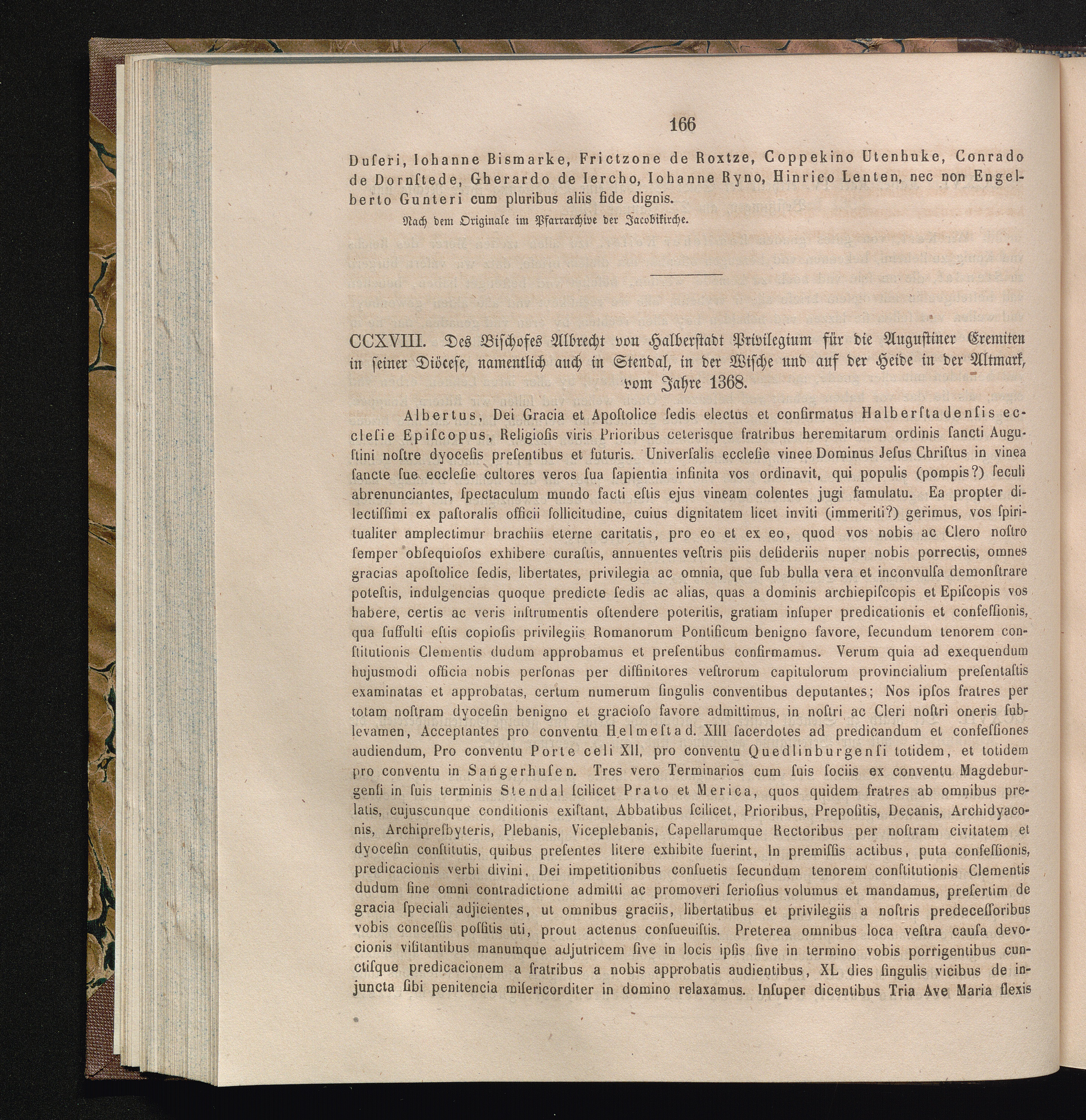 CCXVIII. Des Bischofs Albrecht von Halberstadt Privilegium für die Augustiner Eremiten[...]