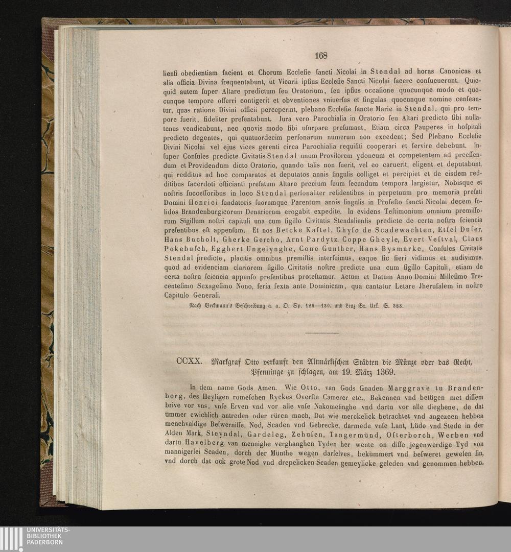 CCXX. Markgraf Otto verkauft den Altmärkischen Städten die Münze oder das Recht,[...]