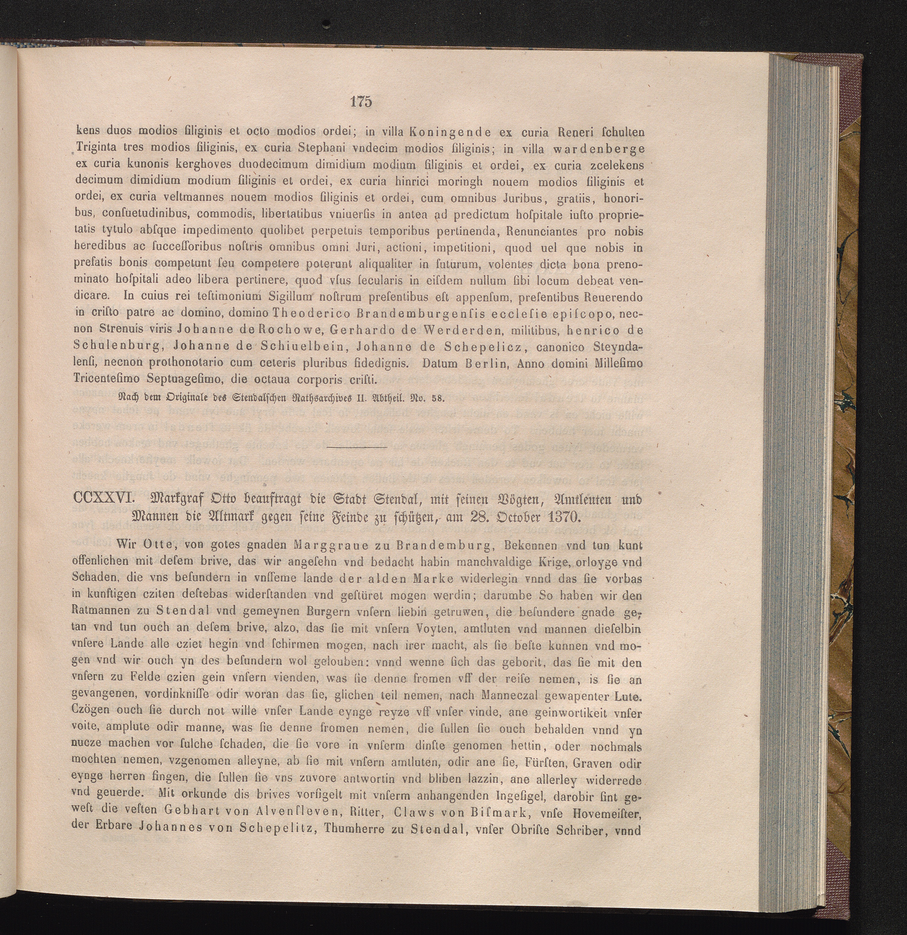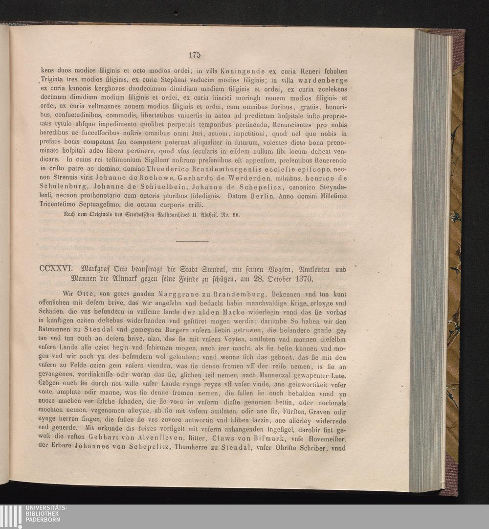 CCXXVI. Markgraf Otto beauftragt die Stadt Stendal, mit seinen Vögten, Amtleuten[...]