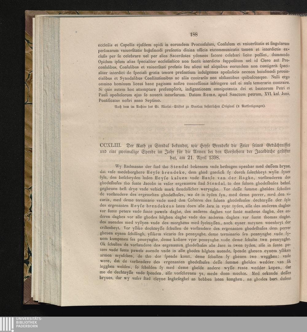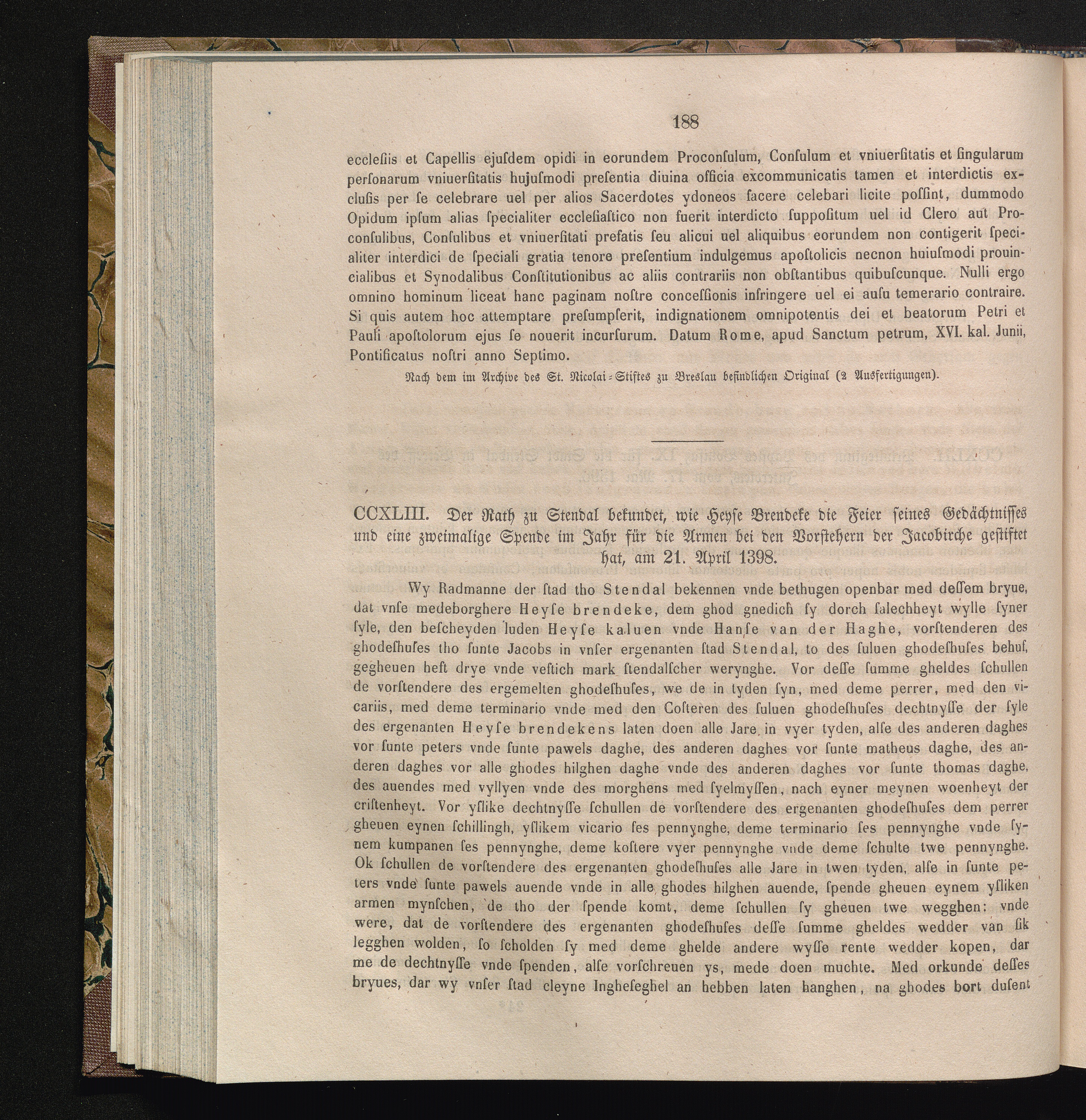CCXLIII. Der Rath zu Stendal bekundet, wie Heyse Brendeke die Feier seines Gedächtnisses[...]