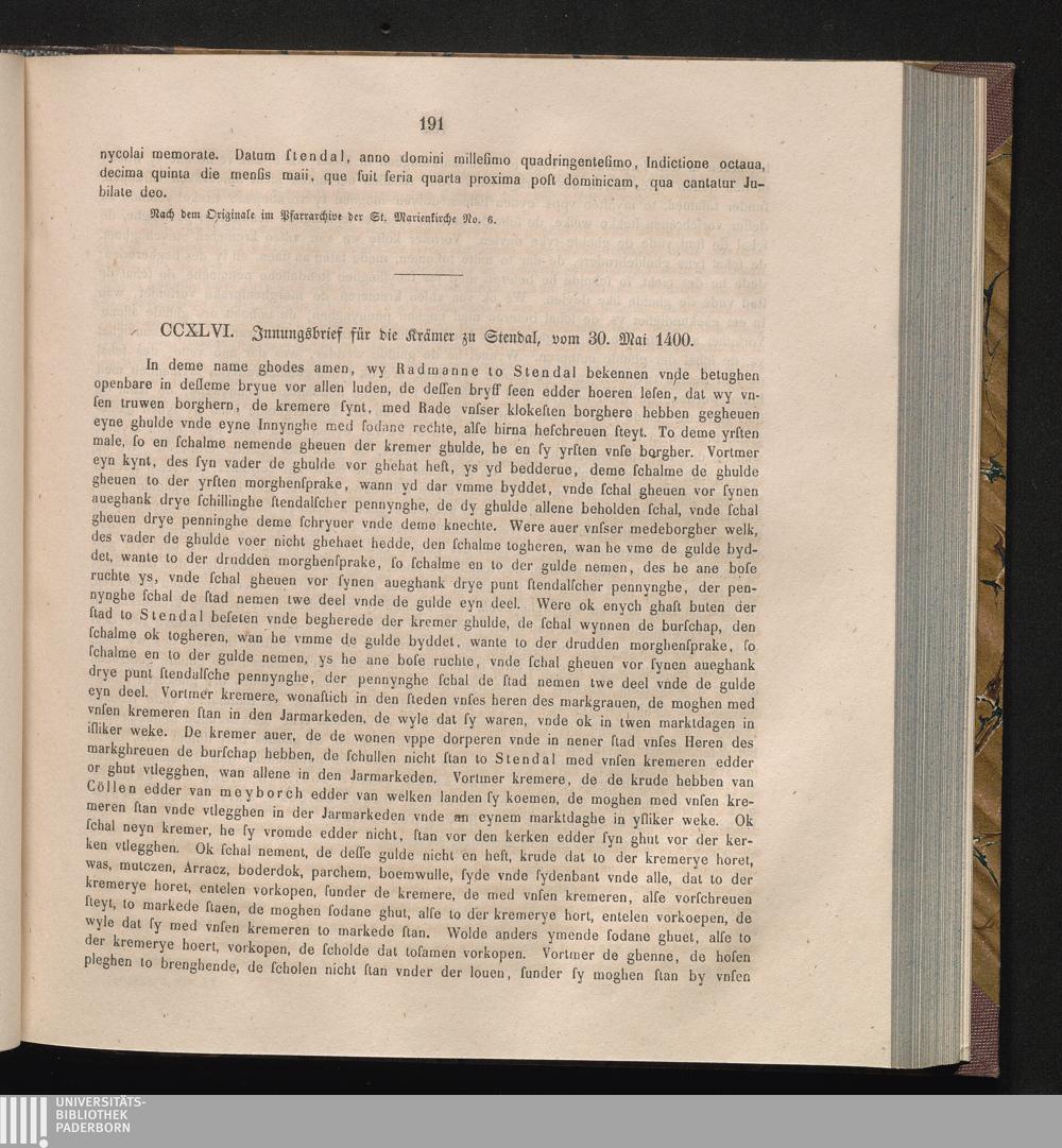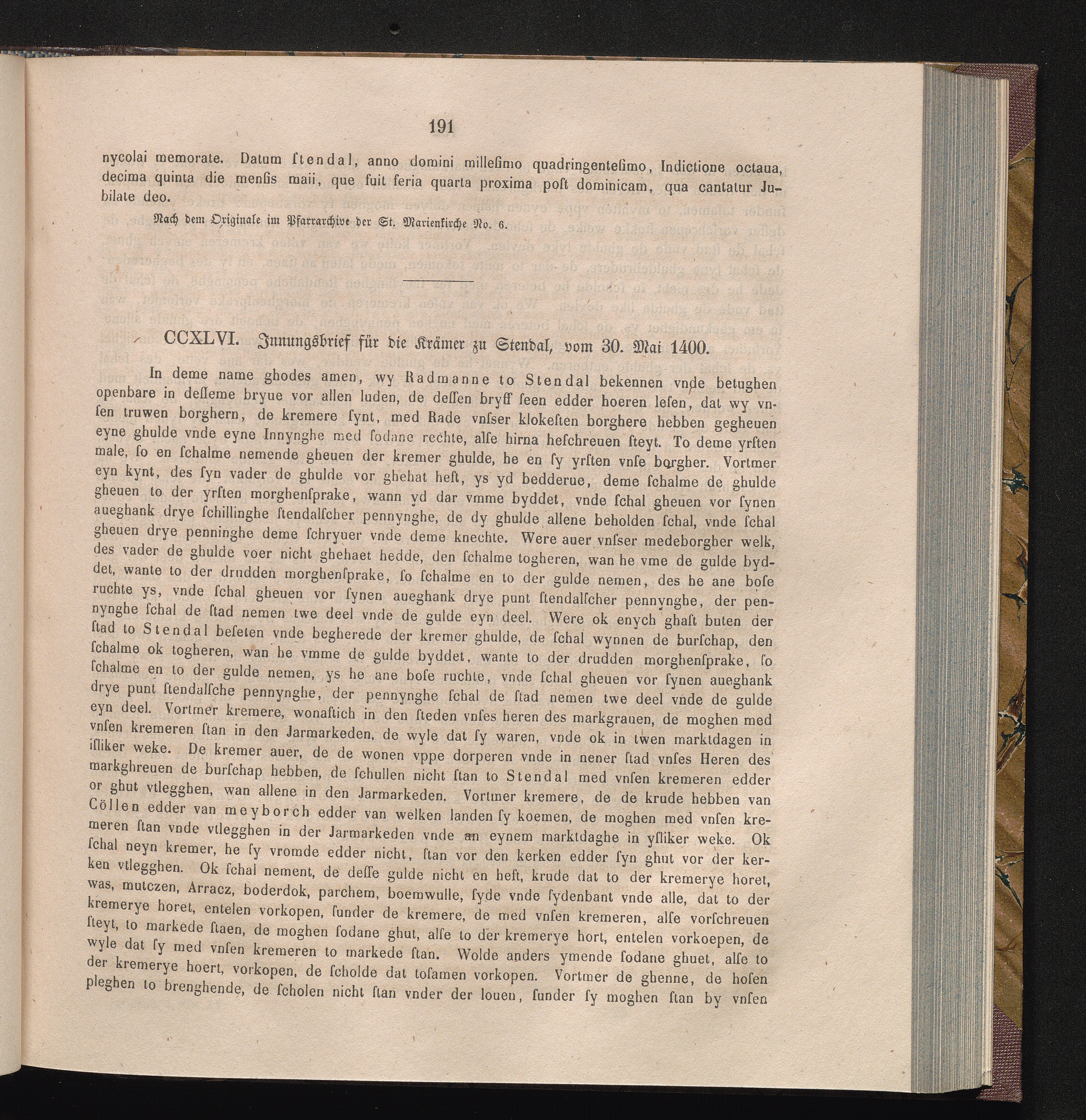 CCXLVI. Jnnungsbrief für die Krämer zu Stendal, vom 30. Mai 1400.