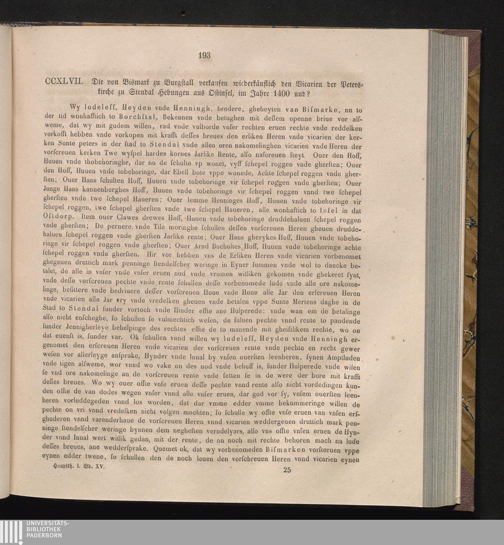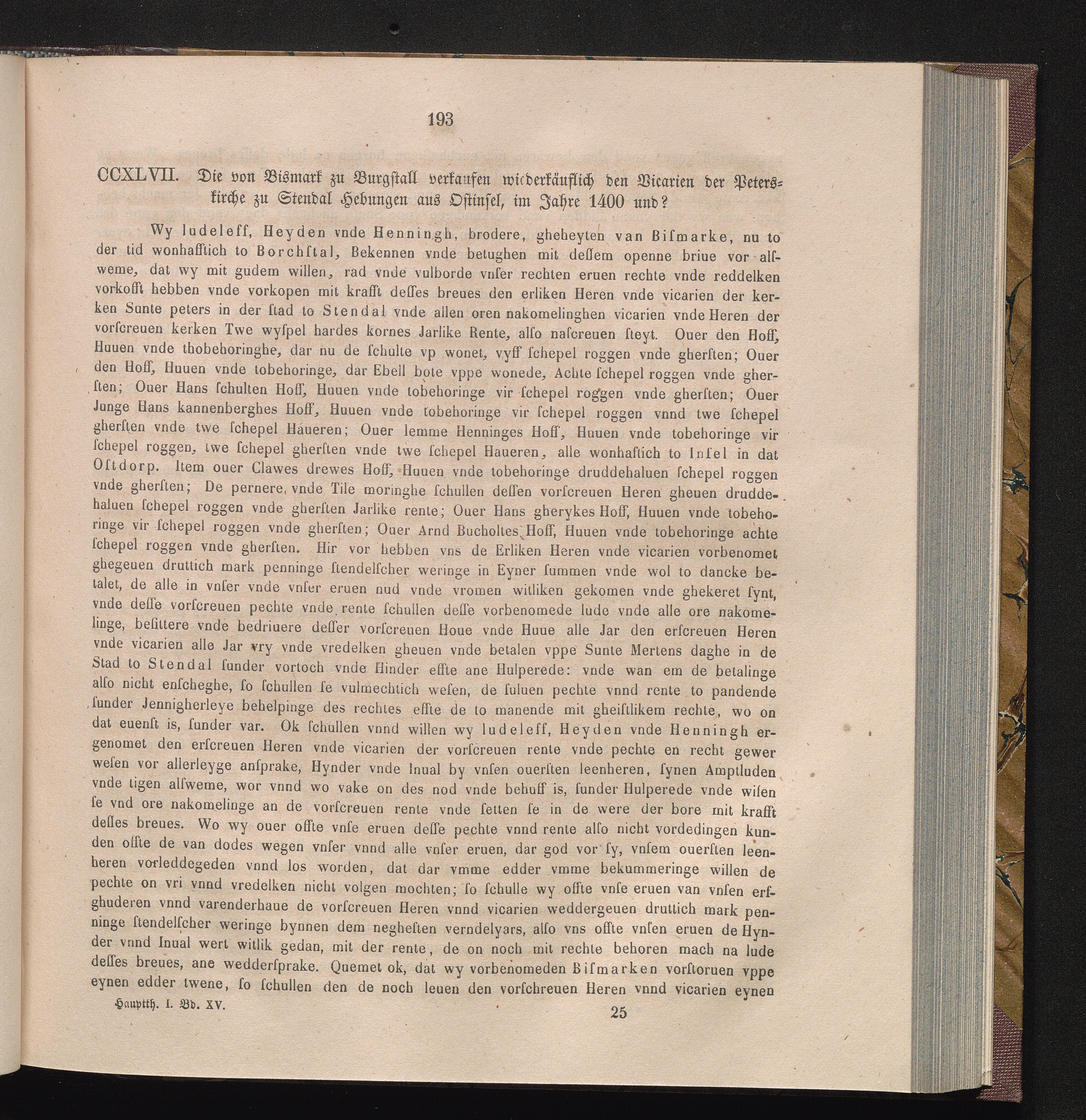 CCXLVII. Die von Bismark zu Burgstall verkaufen wiederkäuflich den Vicarien der Peterskirche[...]
