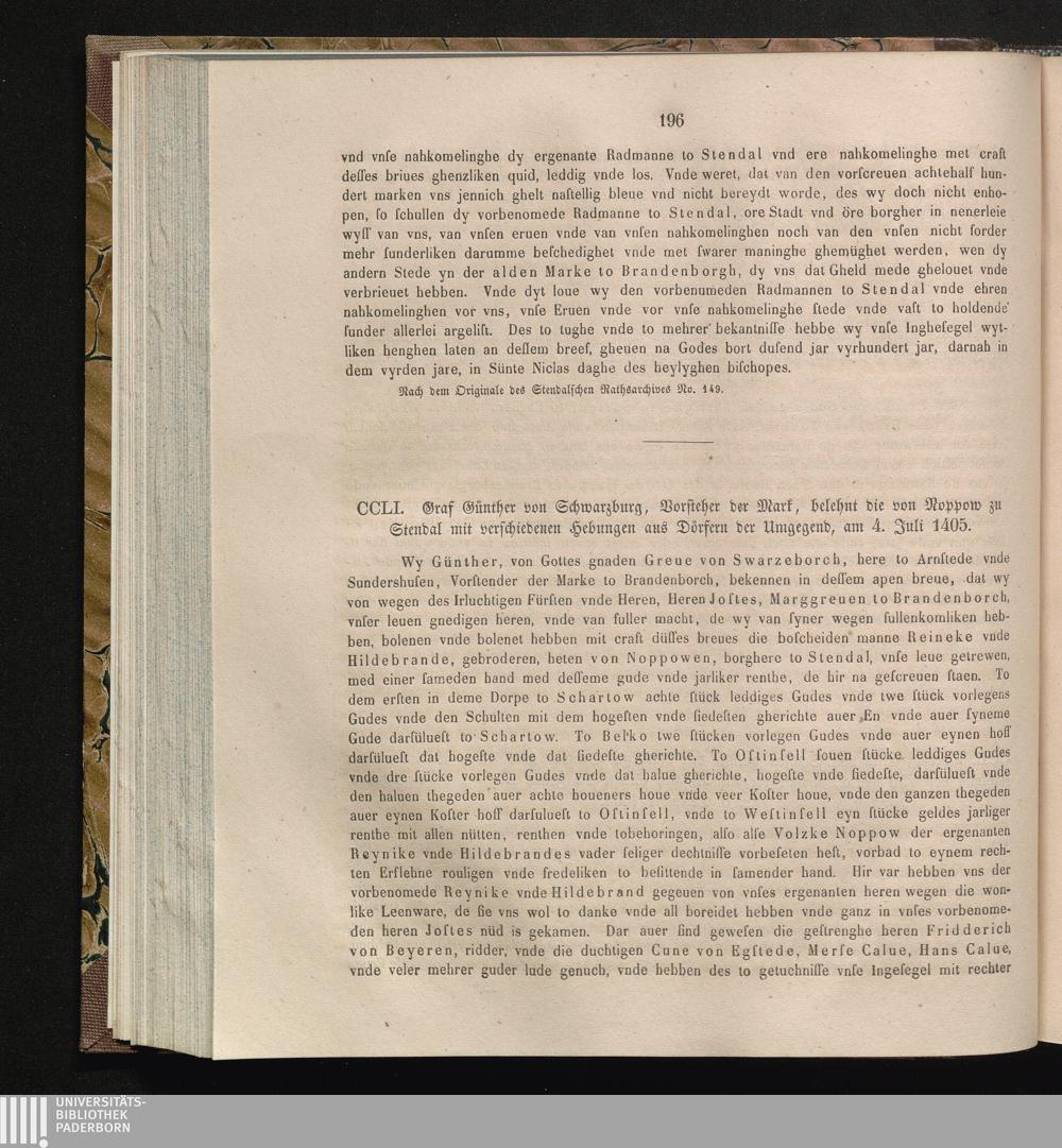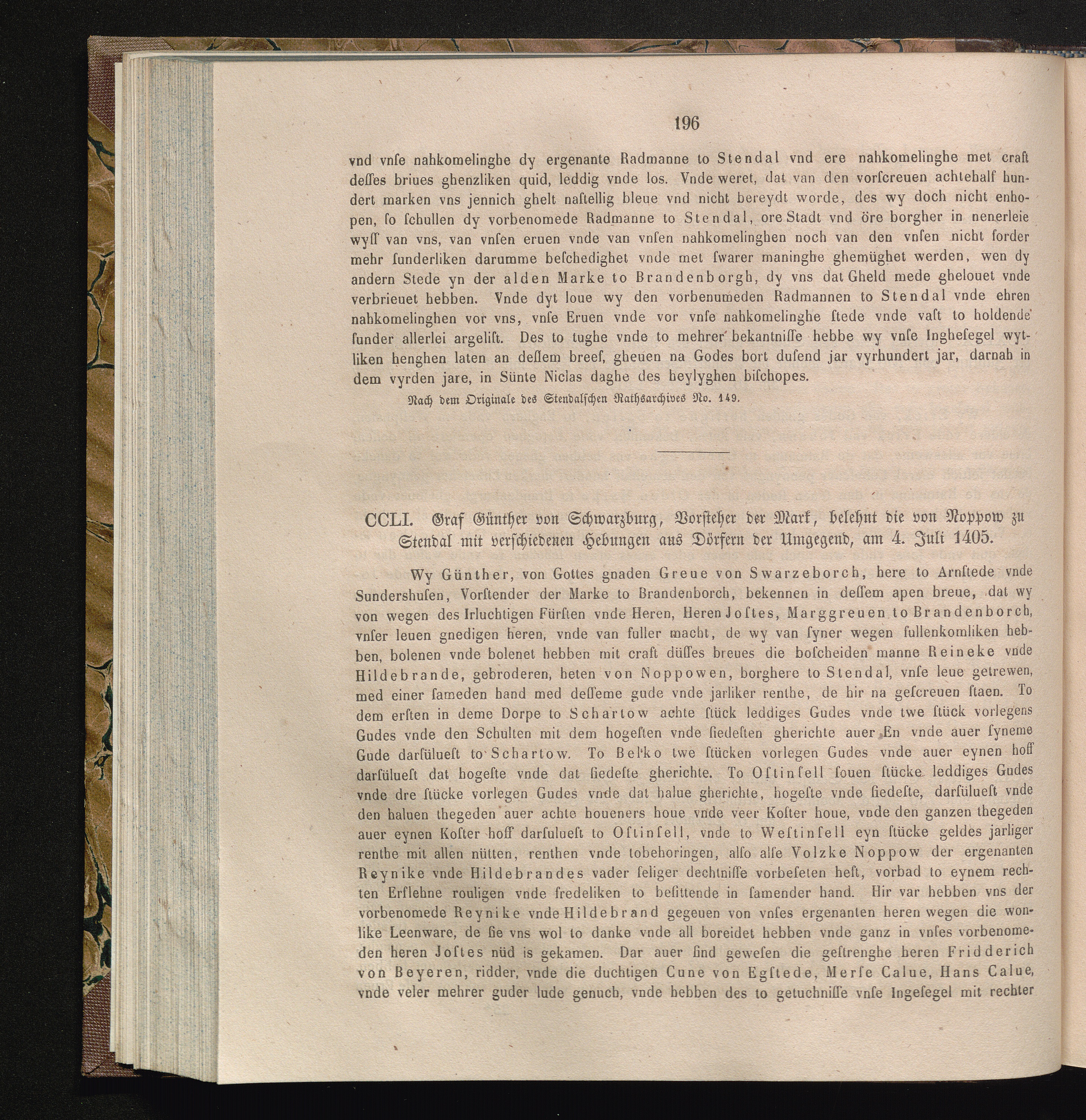 CCLI. Graf Günther von Schwarzburg, Vorsteher der Mark, belehnt die von Noppow zu[...]